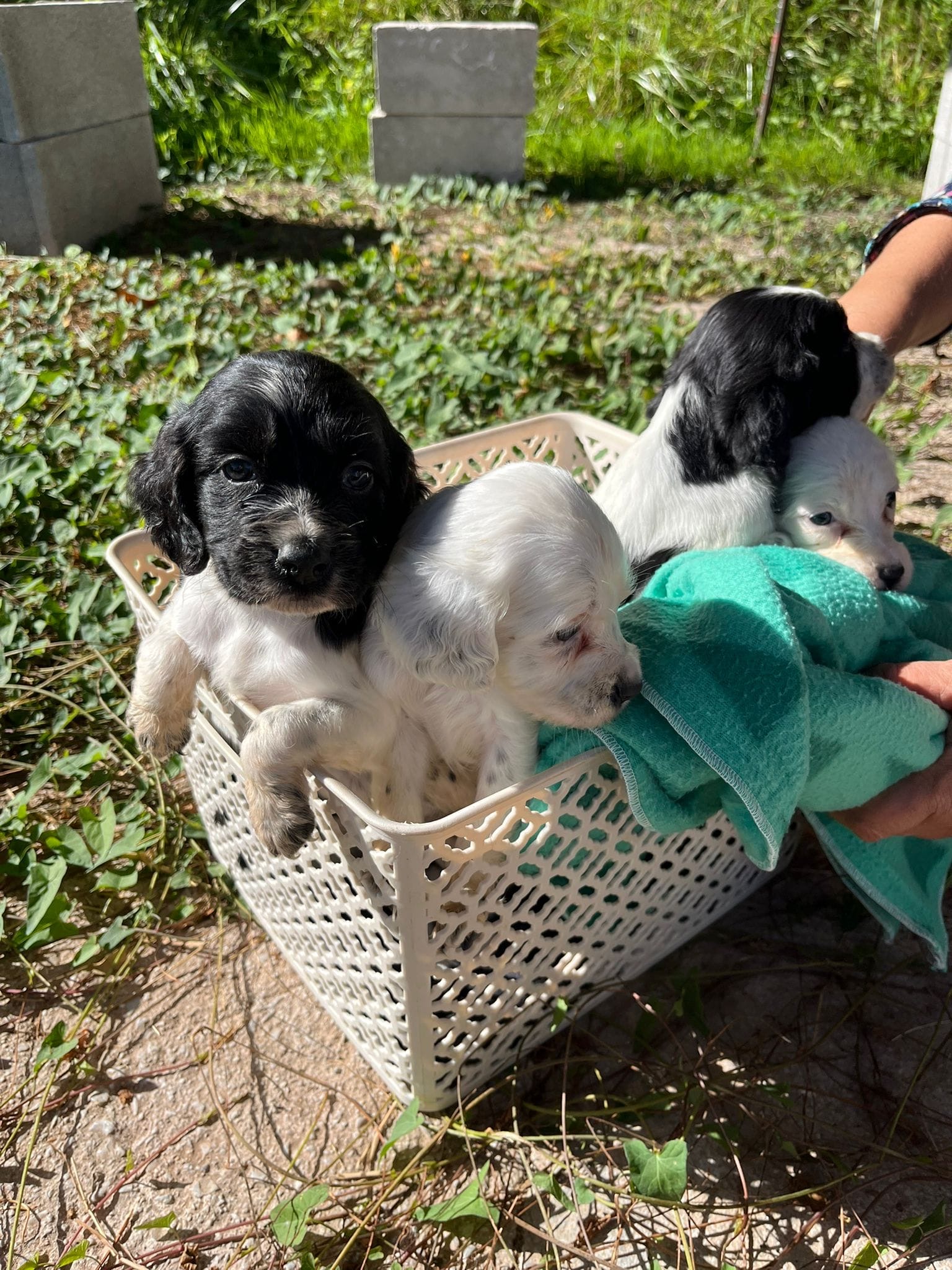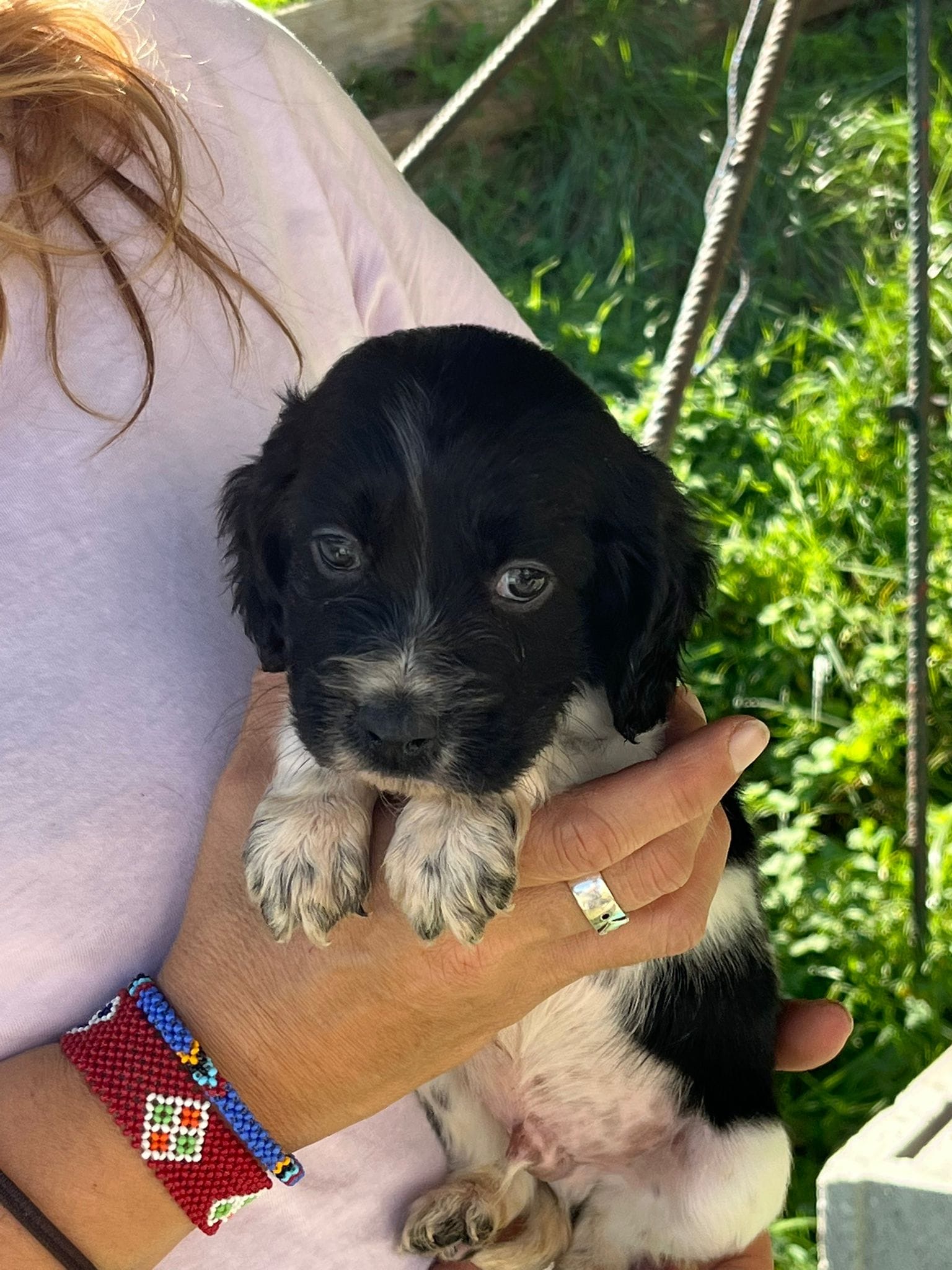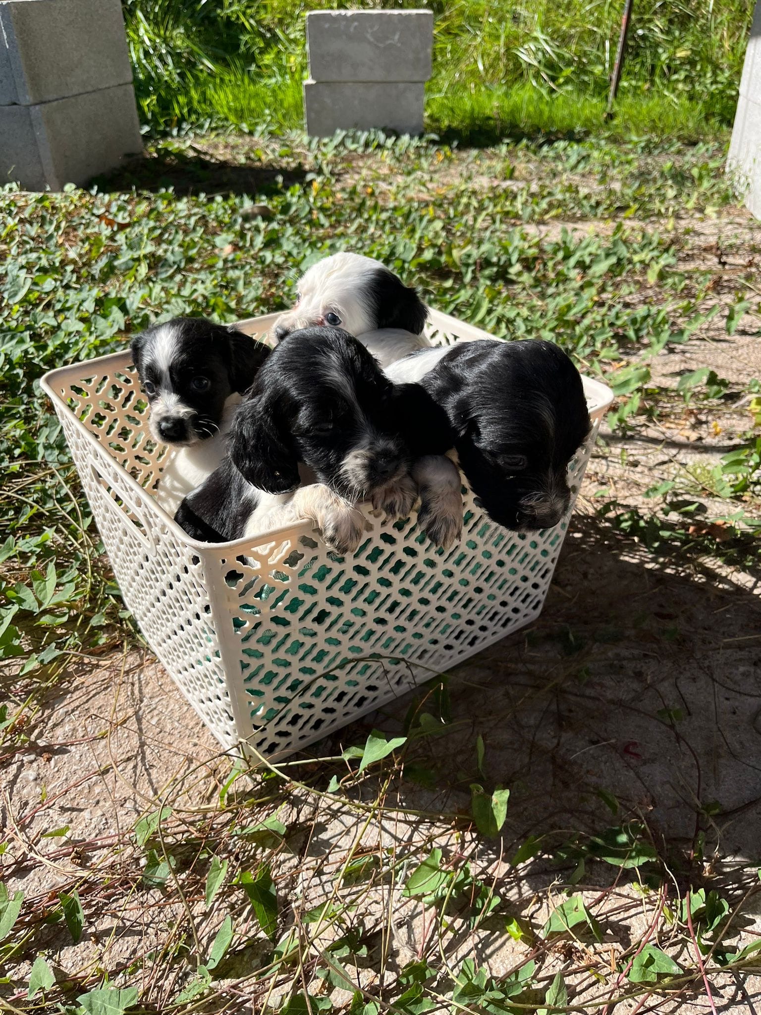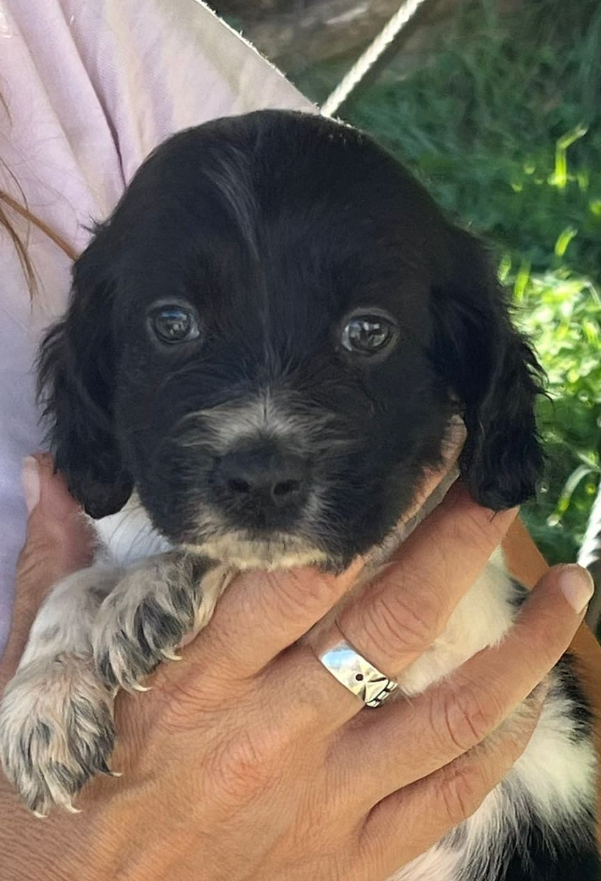Their dad is a Springer Spaniel, making these pups a delightful mix of English Setter and Springer Spaniel. They’re all used to meeting the shelter team and being gently handled, though their socialisation outside the shelter environment has been limited so far.