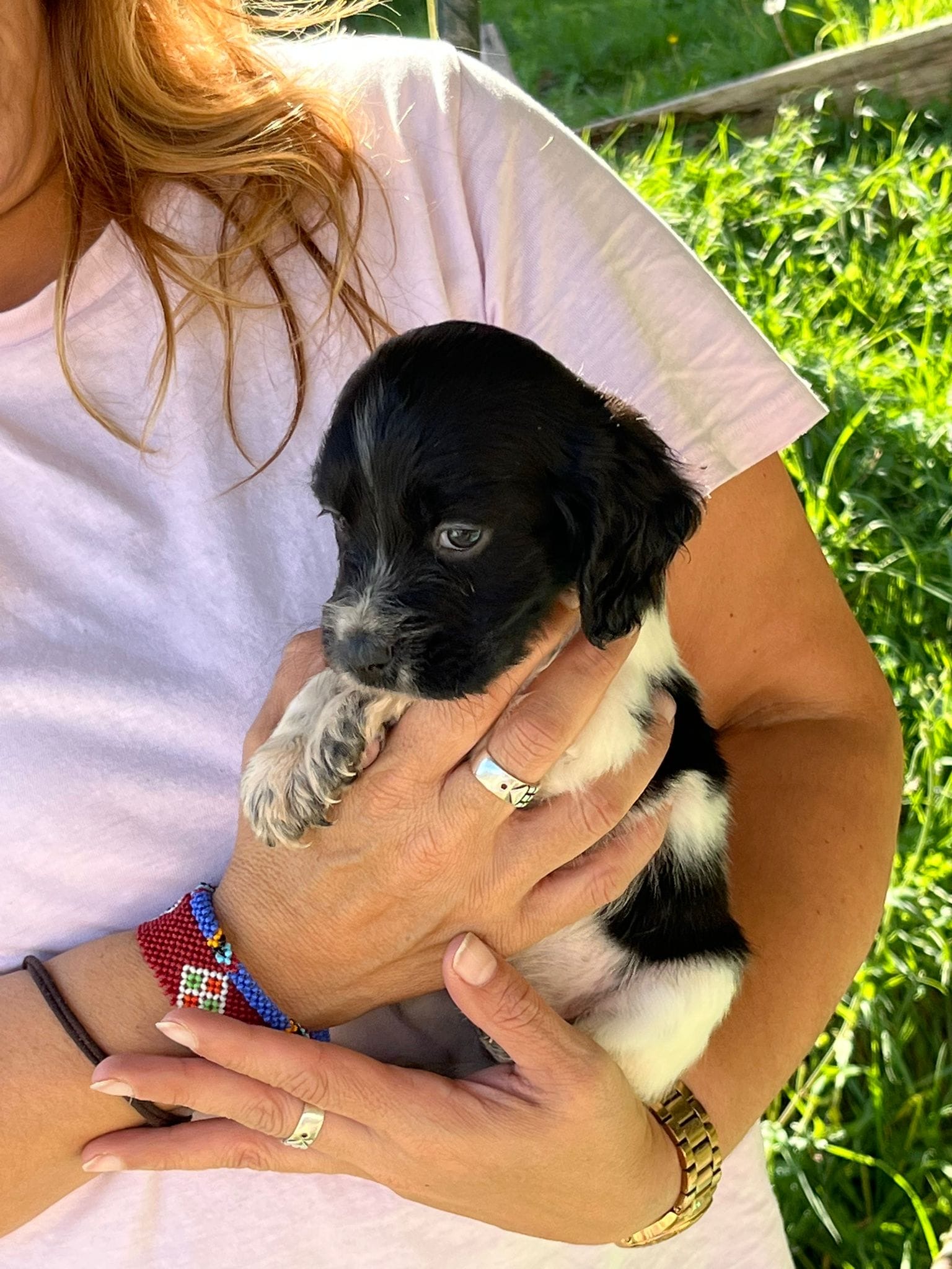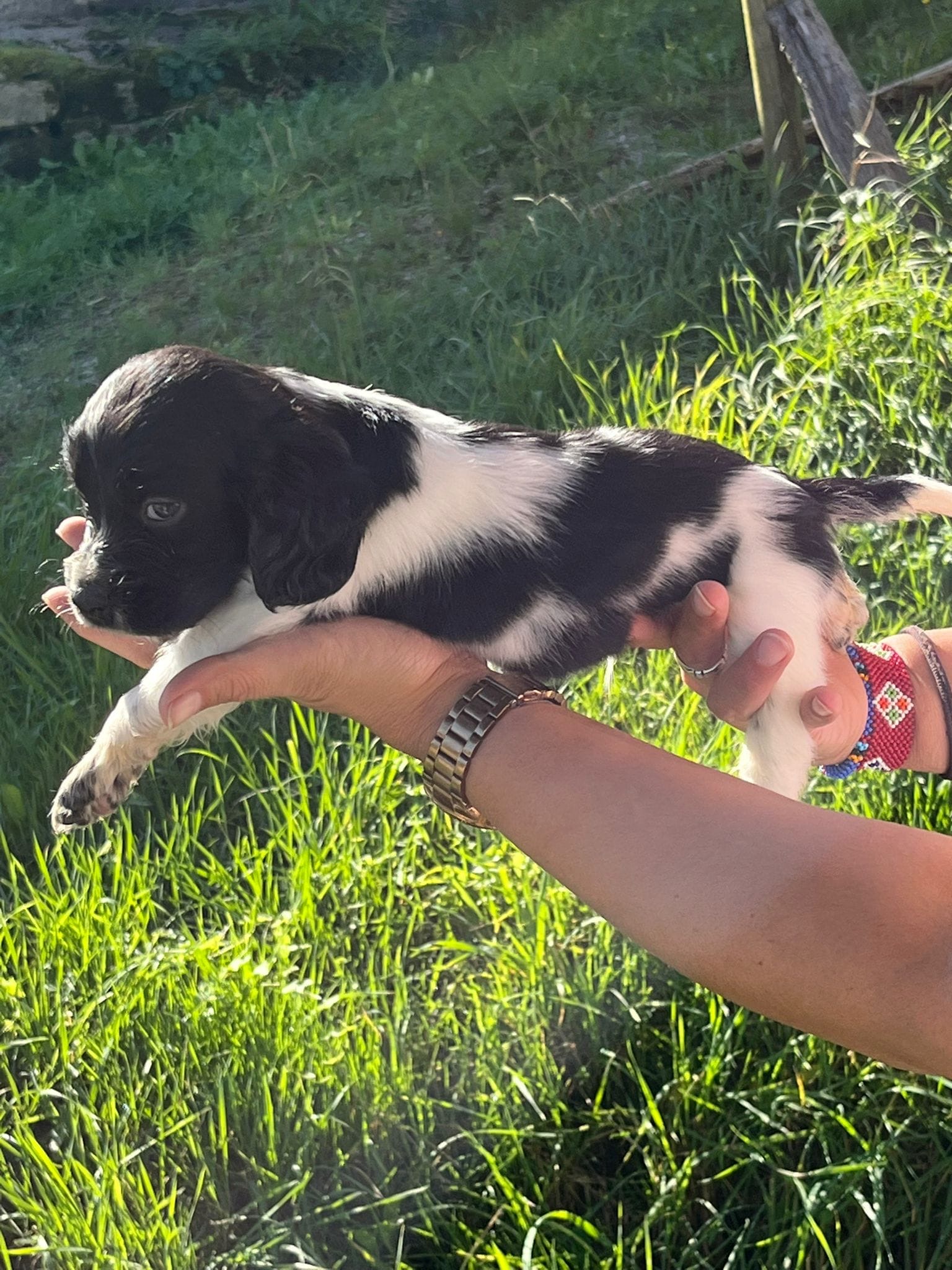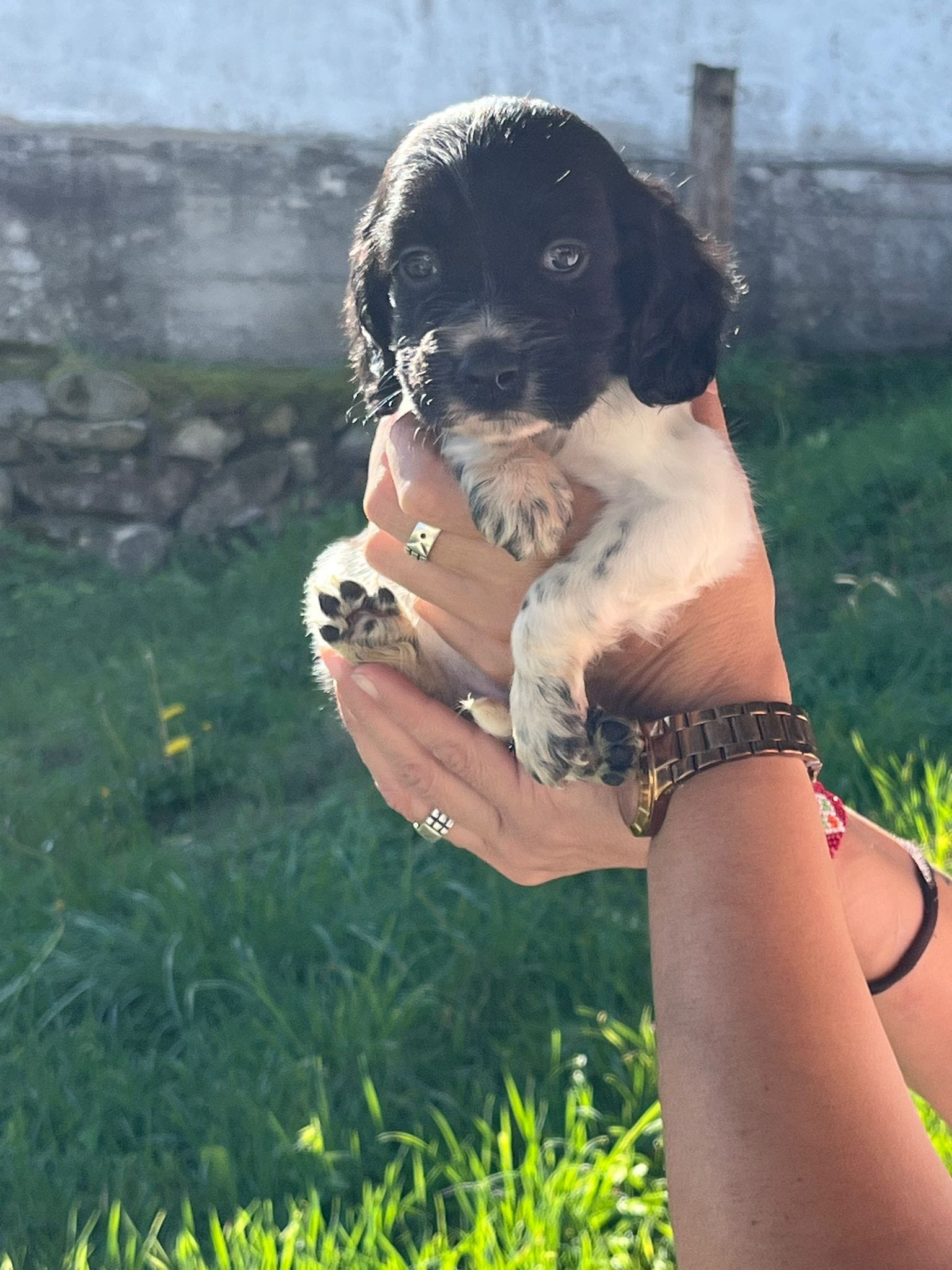 Their dad is a Springer Spaniel, making these pups a delightful mix of English Setter and Springer Spaniel. They’re all used to meeting the shelter team and being gently handled, though their socialisation outside the shelter environment has been limited so far.