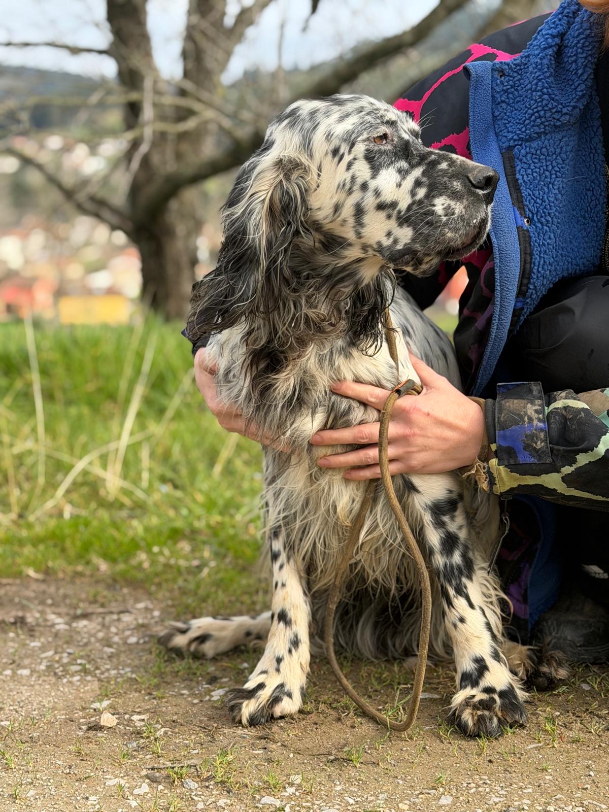 We collected Bruno from a hunter during our trip to Spain. He had been given to the hunter by his friend who no longer wanted him and the hunter decided to get rid of two of his dogs at the same time, something that is sadly very common as we get to the end of hunting season,