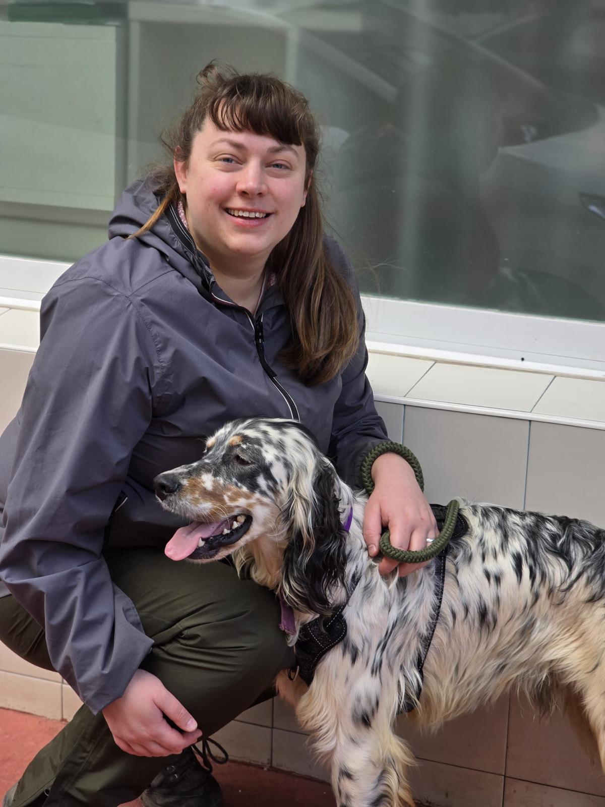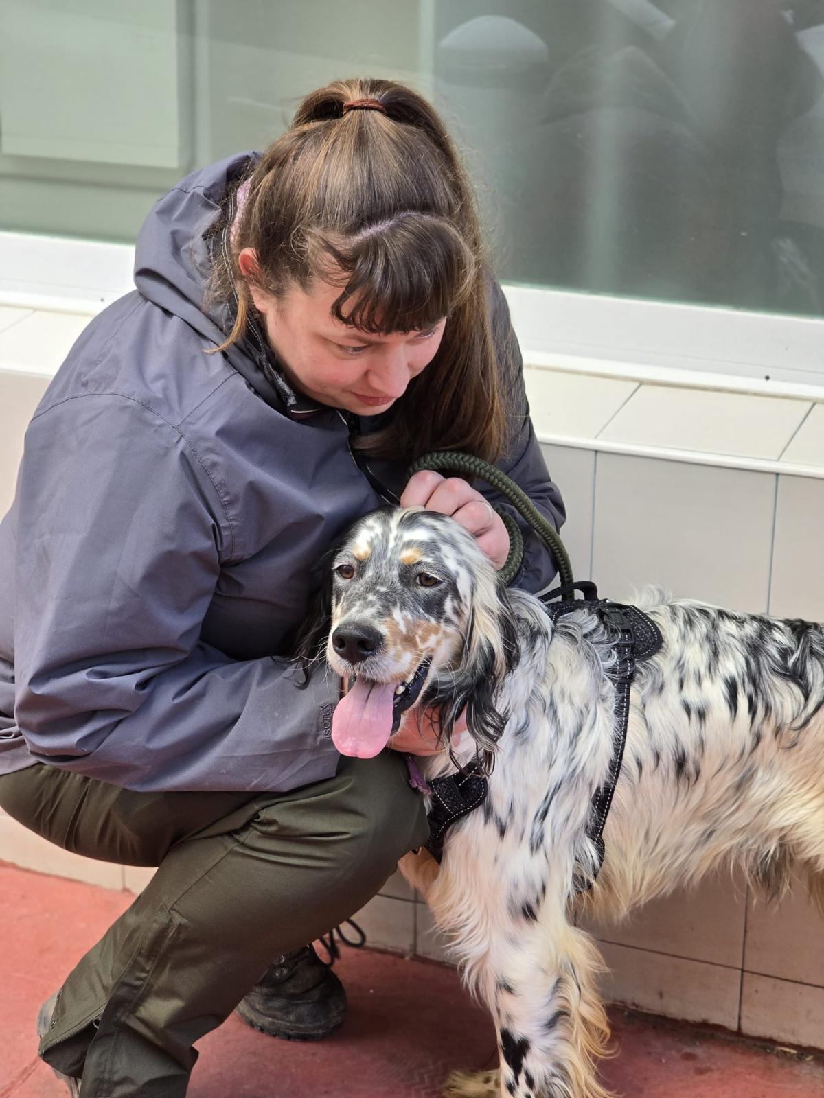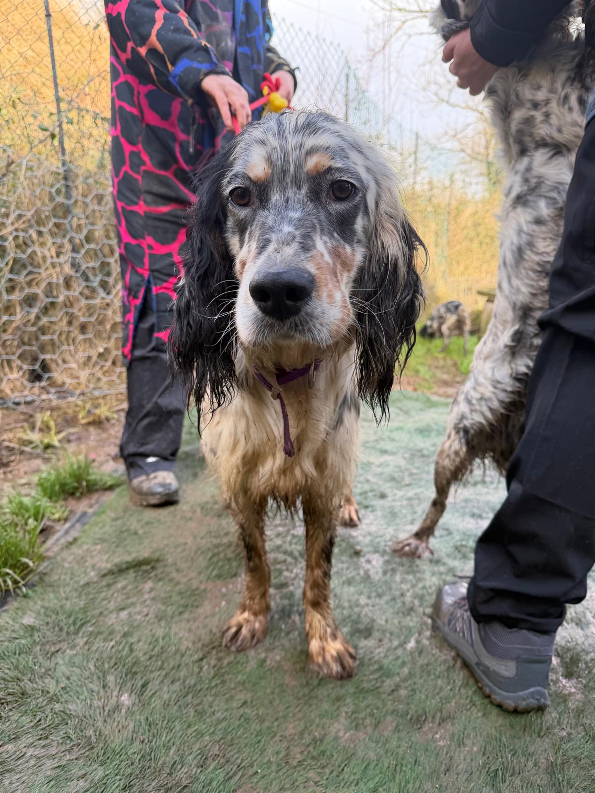 Drick is a very confident boy who doesn’t seem phased by much he’s come across so far since being at the shelter, he was very happy to go to the vets and sit and get all the attention he could and happy meeting new dogs there too. He’s very happy to be around people as well. He’s a big strong lad who has thankfully arrived at the shelter in good condition although sadly his tail is stained yellow from living with his hunter. Once it grows out, he’ll have a beautiful coat!