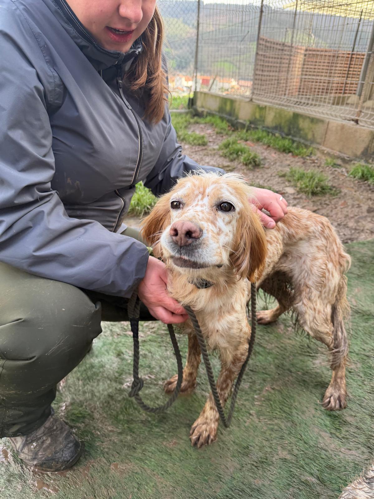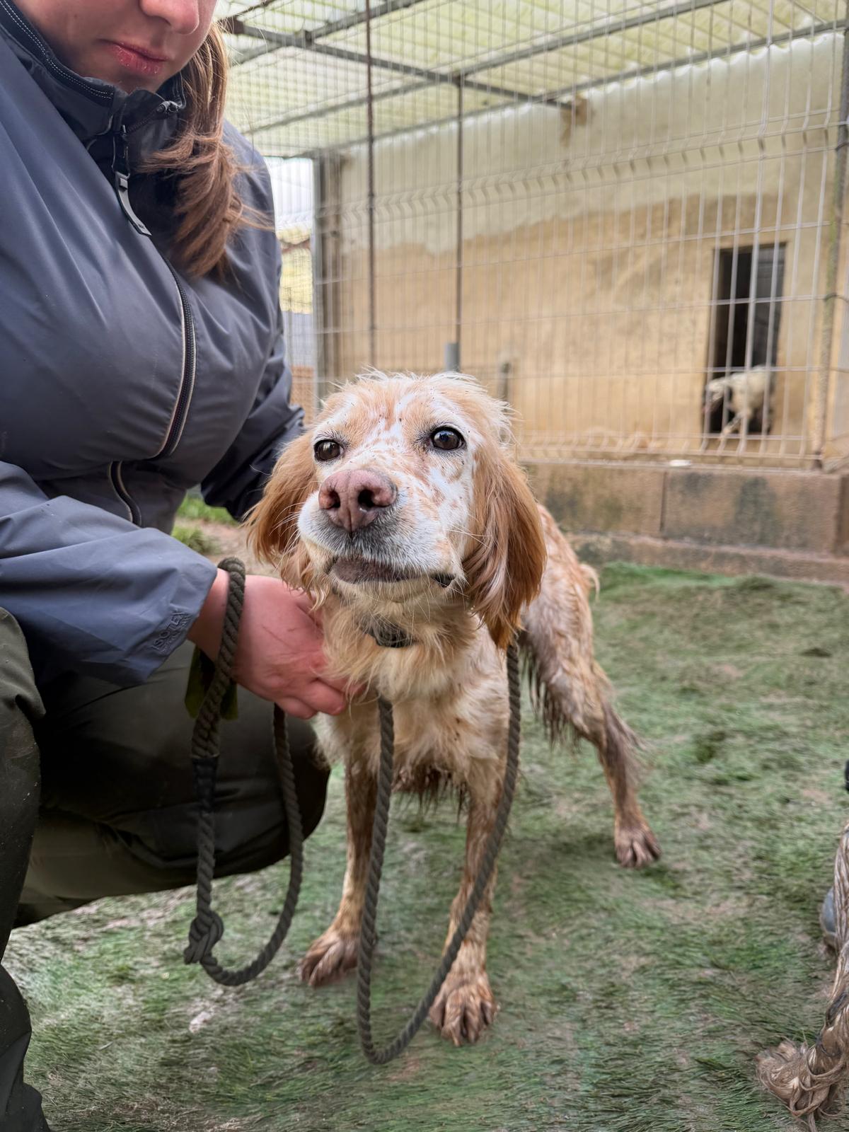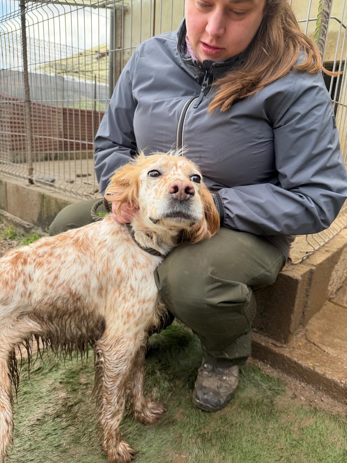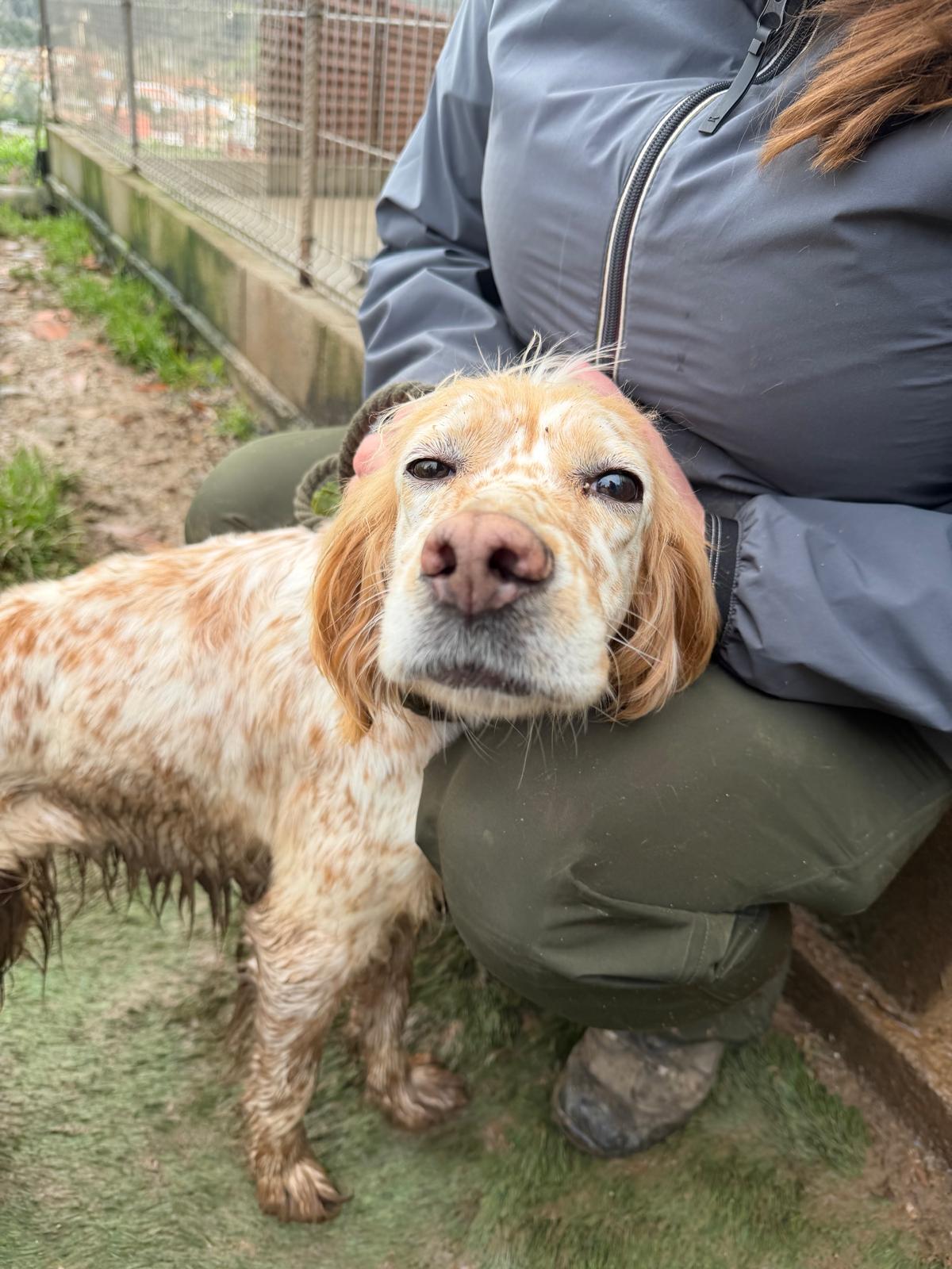 Estrella was abandoned by her hunter along with 5 other dogs towards the end of hunting season since she was no longer wanted. Sadly this is very common as hunters make room for more dogs or next season. She shares her kennel at the shelter with other setters and they get on really well together although Estrella is quite happy to attach herself to a human, even one she’s only just met! She’s a really sweet girl and she gives little tail wags when she gets a fuss.