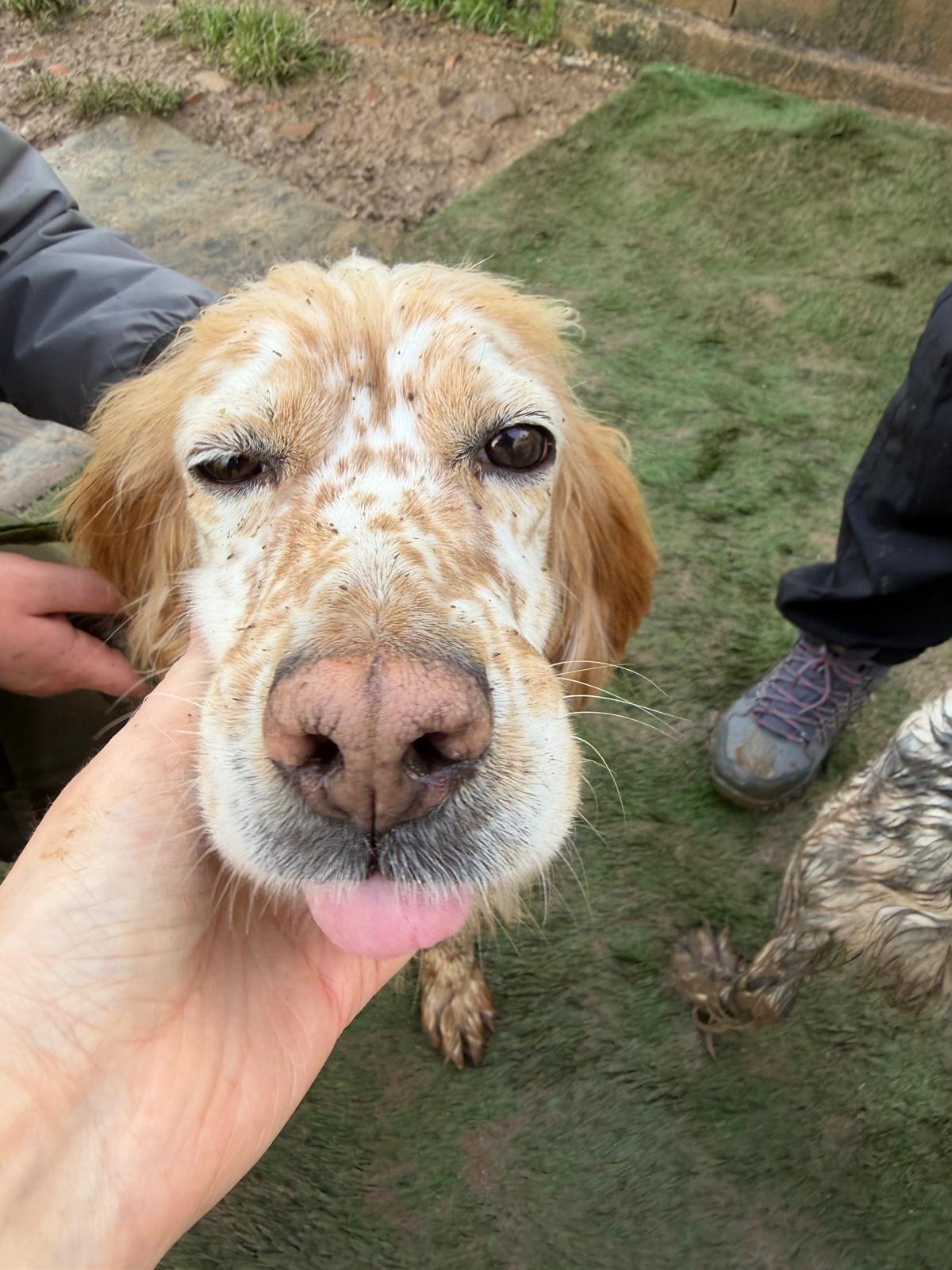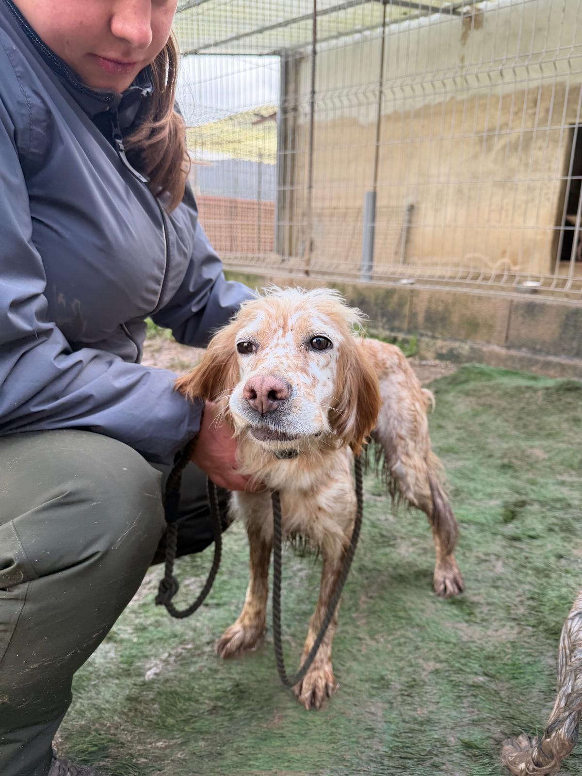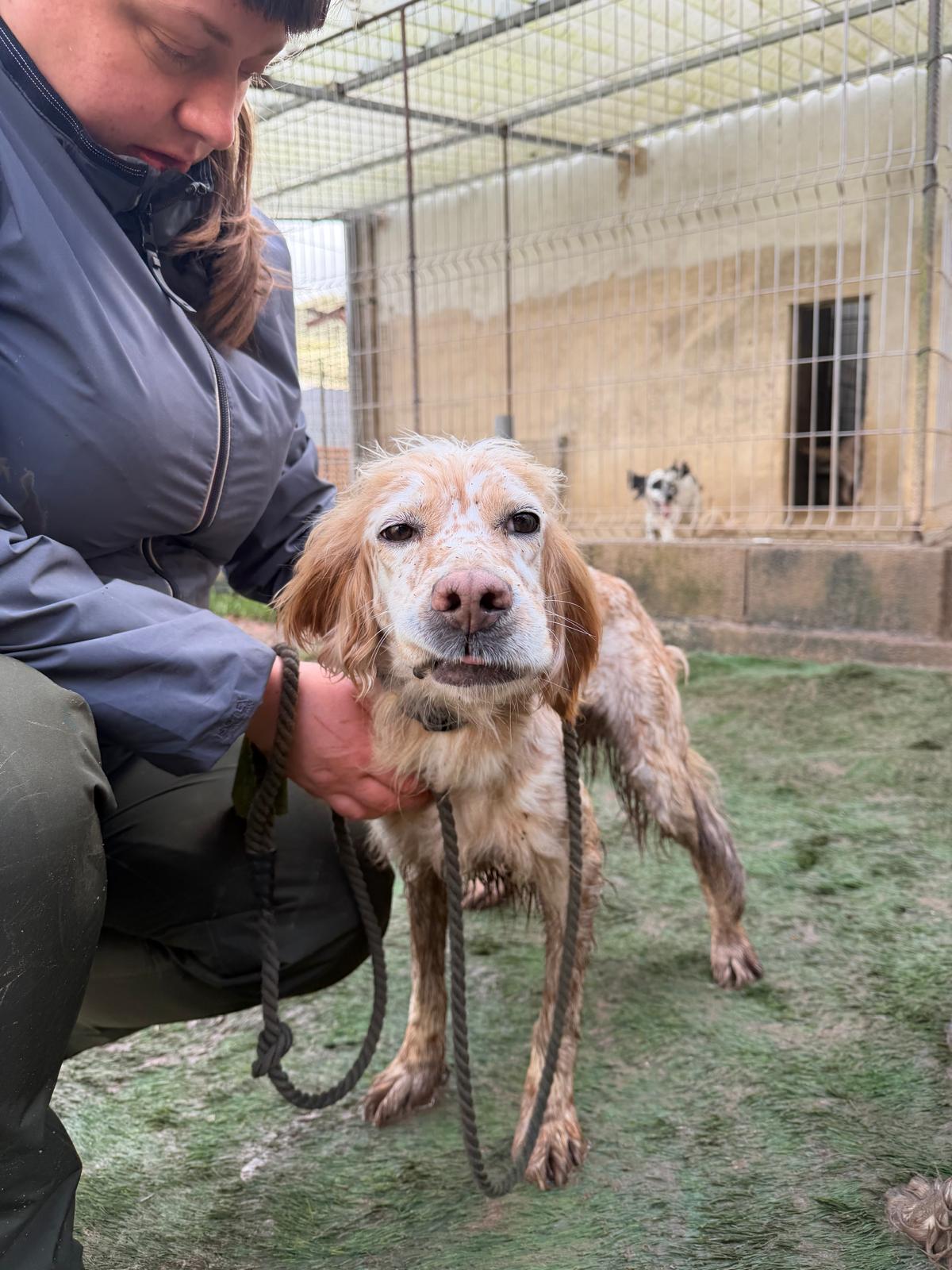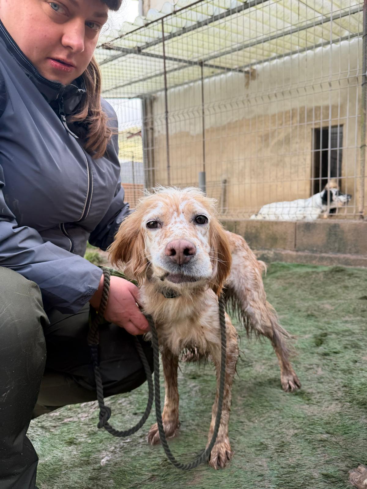 Estrella was abandoned by her hunter along with 5 other dogs towards the end of hunting season since she was no longer wanted. Sadly this is very common as hunters make room for more dogs or next season. She shares her kennel at the shelter with other setters and they get on really well together although Estrella is quite happy to attach herself to a human, even one she’s only just met! She’s a really sweet girl and she gives little tail wags when she gets a fuss.