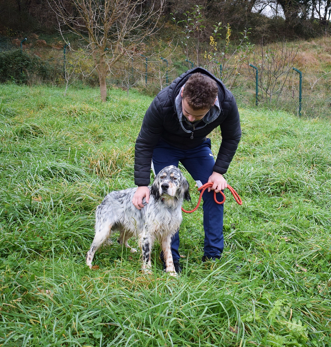 Iro is a beautiful, joyful tricolour English setter, abandoned with Balto by their hunter.