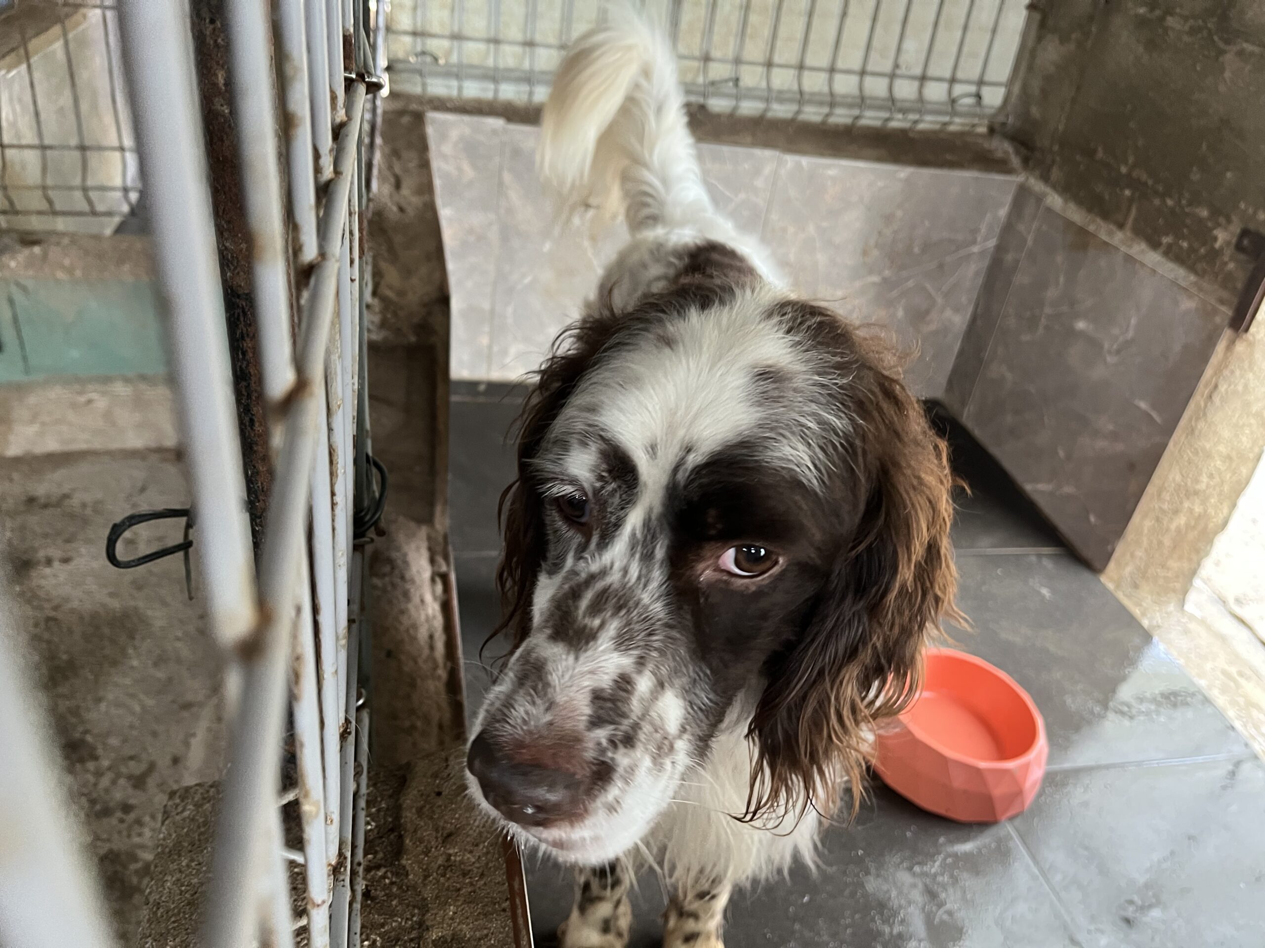 Ken is a lovely lad, another given up by his hunter because he was not wanted for hunting. He’s a cheerful, affectionate dog with so much love to give. He adores attention, enjoying a good fuss and a cuddle whenever he can get one. Ken gets on brilliantly with the other dogs he shares his kennel with and loves going outside with them for a proper run around. He can be a little shy when he first meets new people, but he gains confidence quickly, especially when he’s in the company of other dogs.