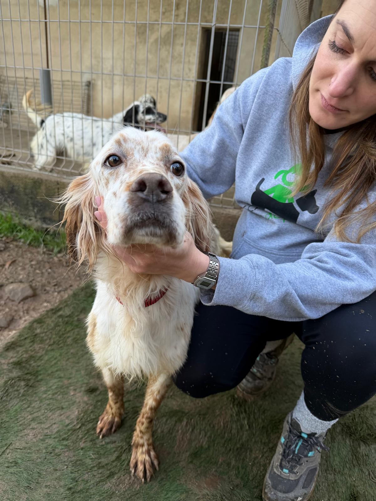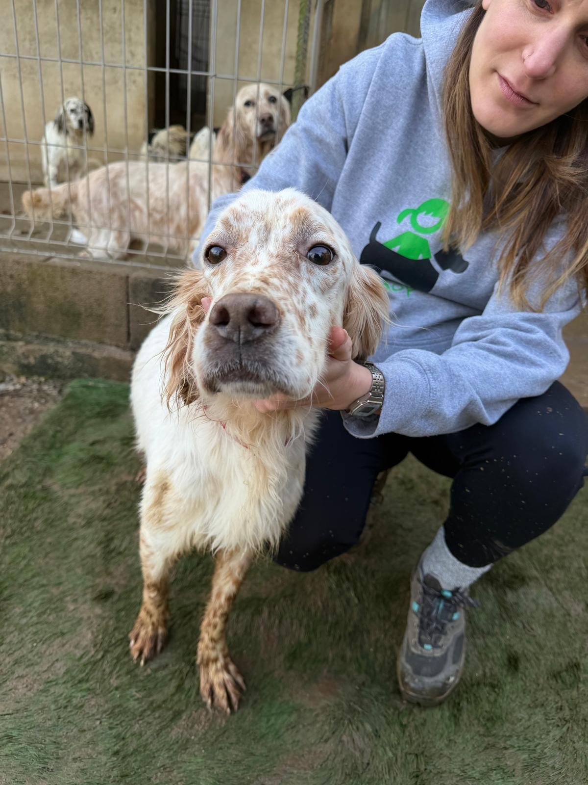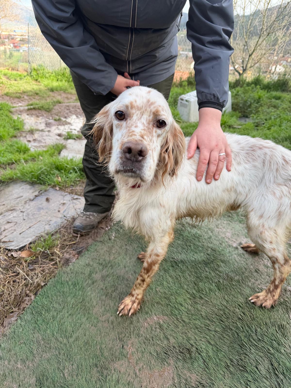 Lar is a handsome, friendly setter who was given up by his hunter, along with Nahi, when he could no longer care for them. Lar is an energetic, active boy who gets along wonderfully with both male and female dogs.