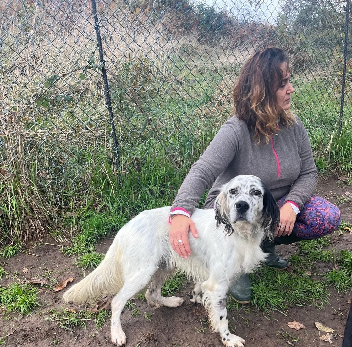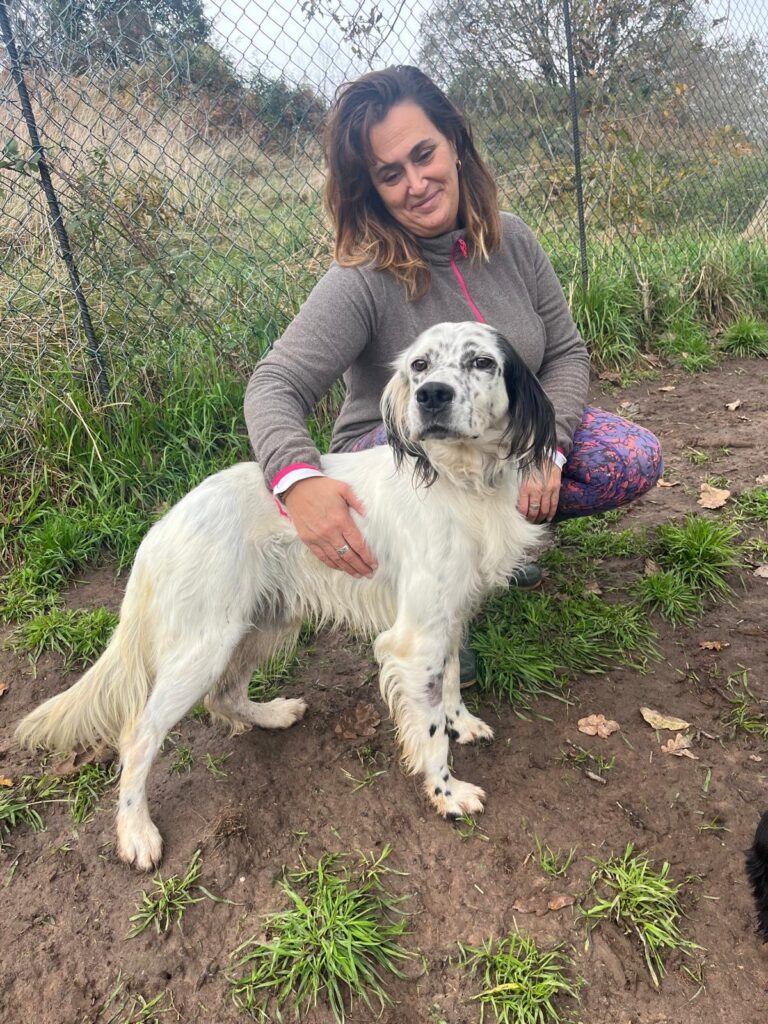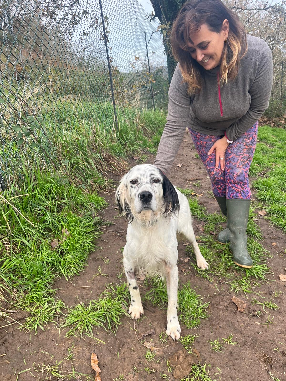 Ola has a cheerful, very sociable nature. He currently shares a kennel with another dog, and they get along perfectly, happily sharing both space and food. With people, Ola is affectionate and devoted, always eager to give and receive cuddles. He travels well in the car and is very attentive around the shelter, coming running as soon as he’s called (though on an exciting walk that will likely change, he is a setter, after all!).