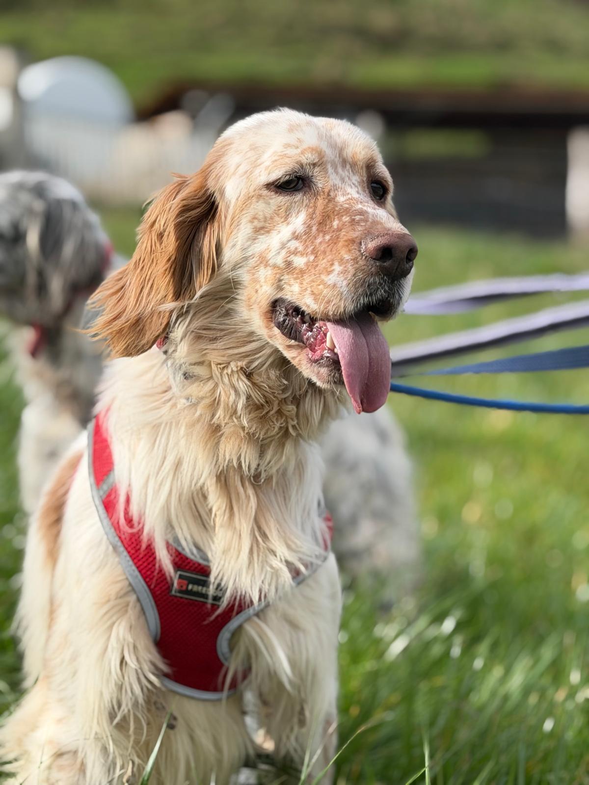 Oleo would love a home with a resident dog and somebody around most of the time. He will need patience to help his confidence but we expect his confidence will improve quickly once he’s in a home environment with a family.
