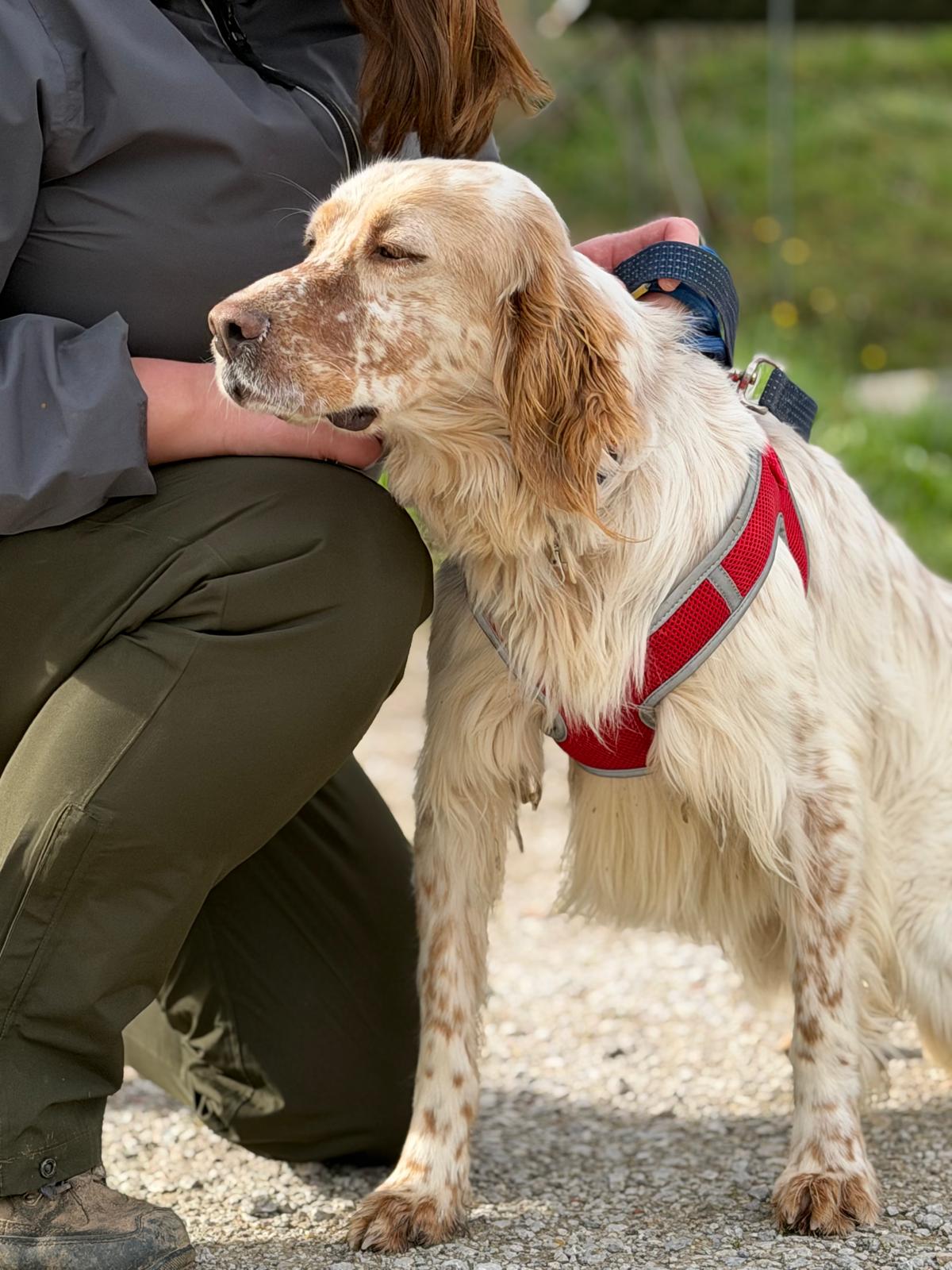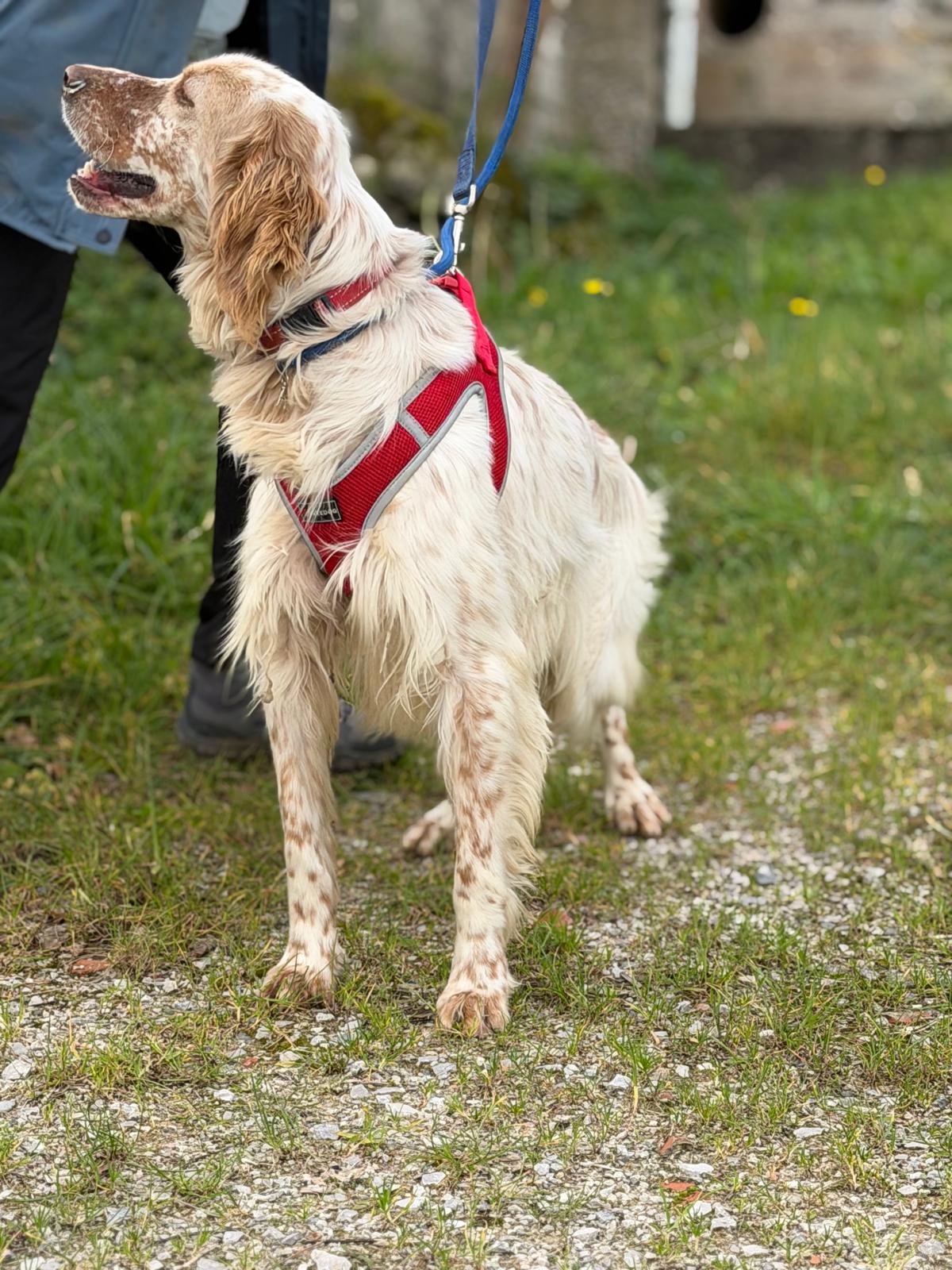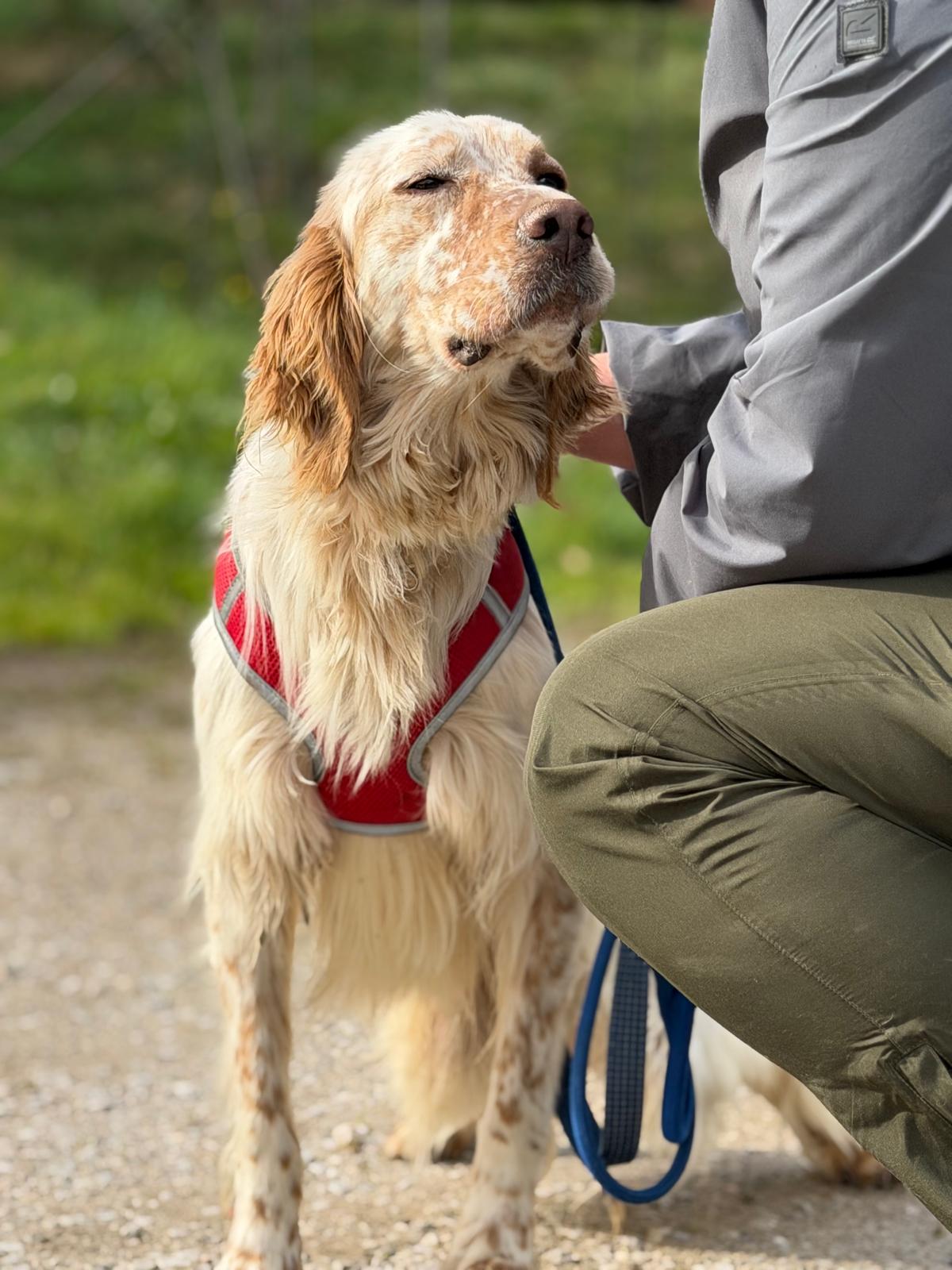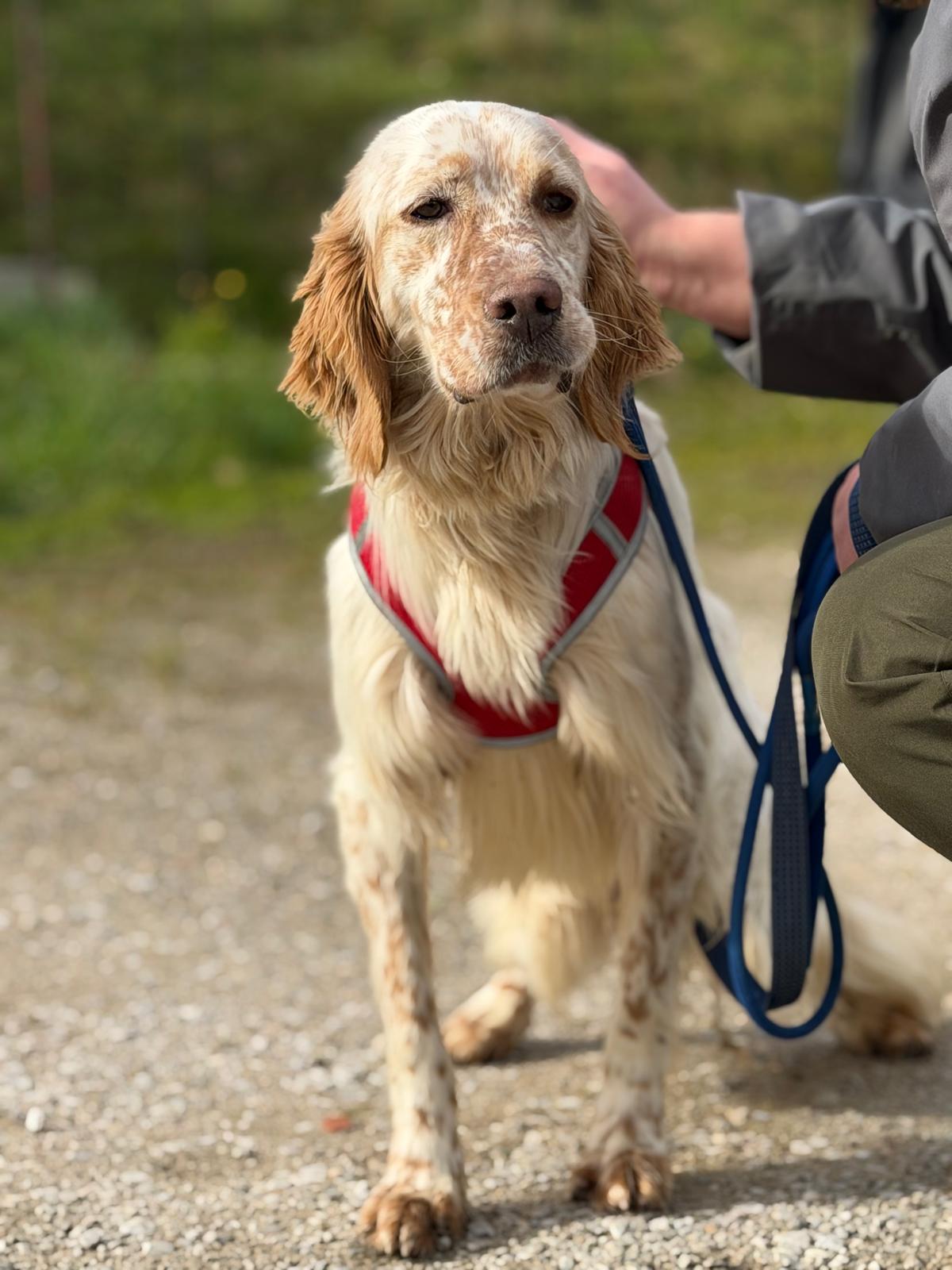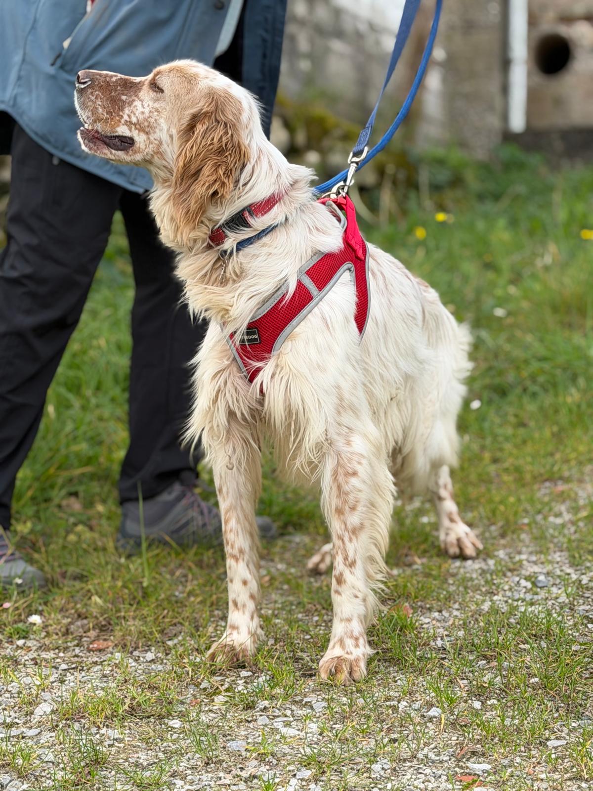 He can be slightly nervous to start with but he loves a treat which really helps to increase his confidence out and about. He also loves to be stroked for reassurance and will undoubtedly come out of his shell in no time in a loving home