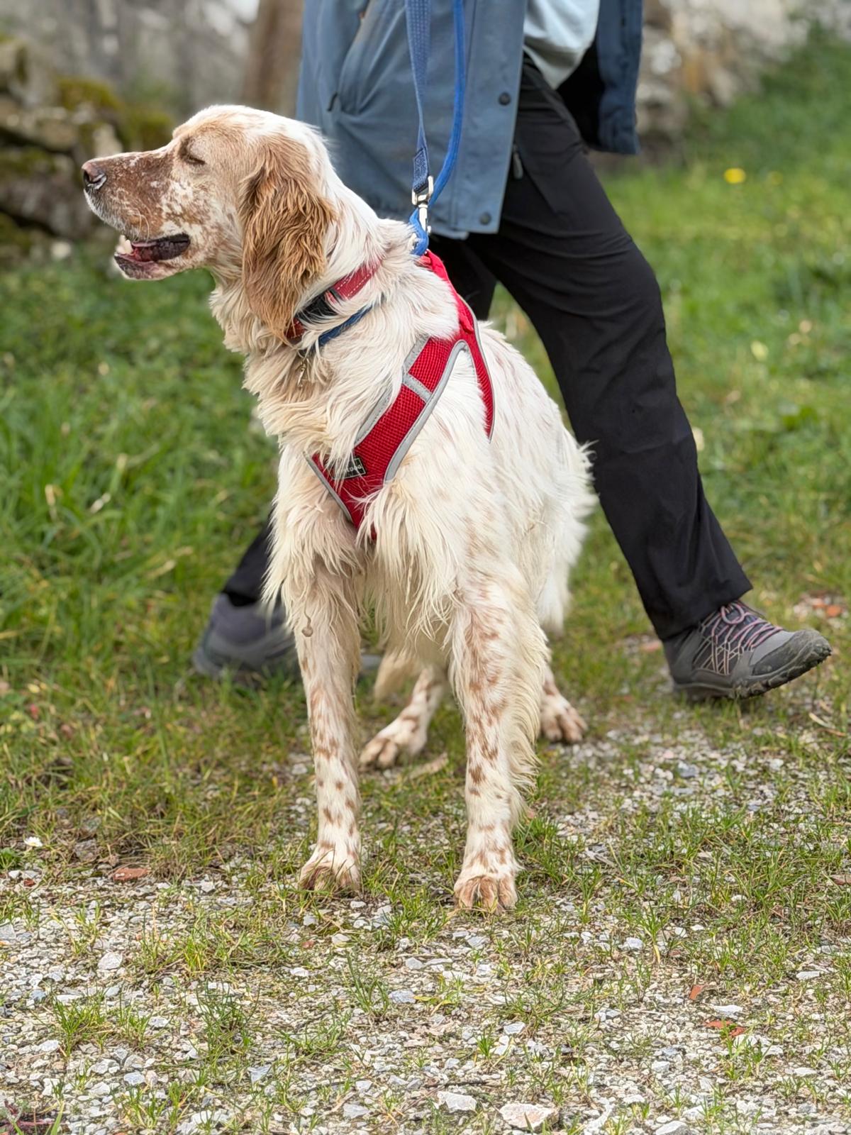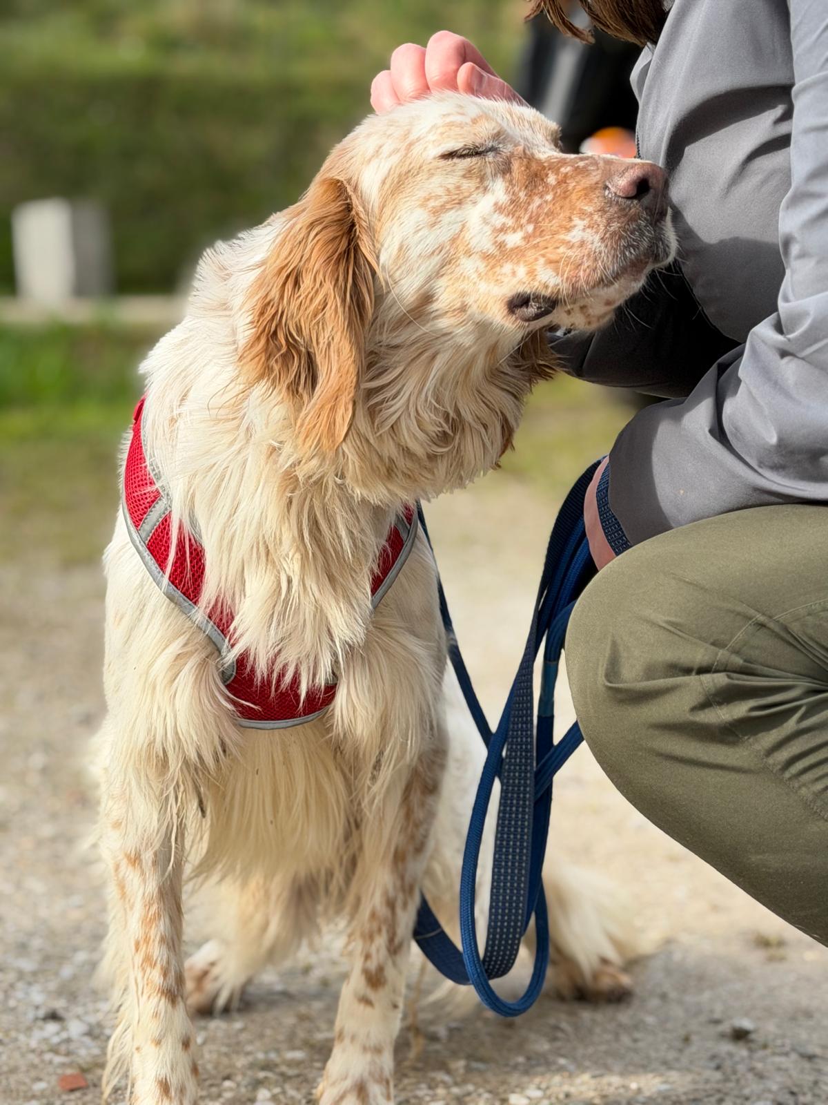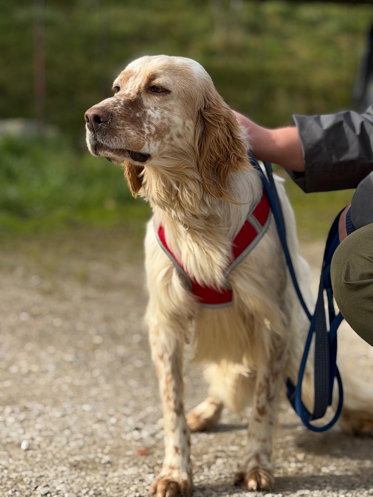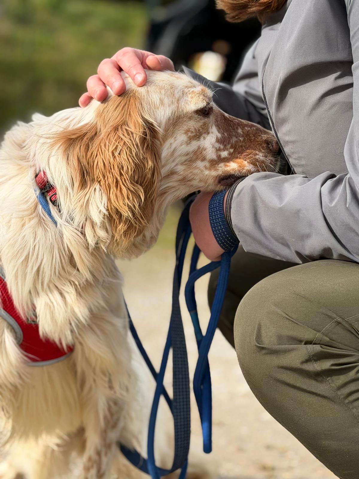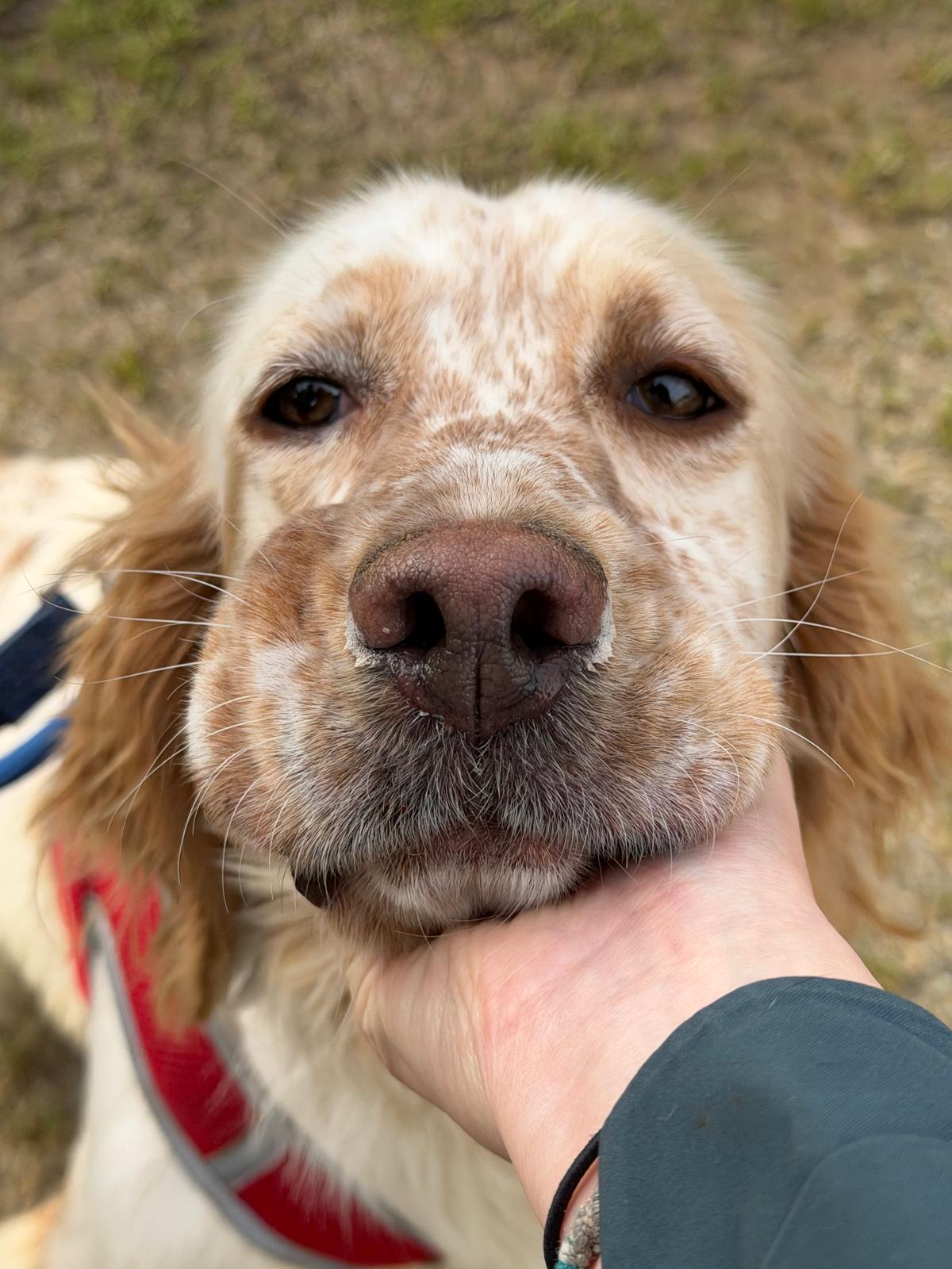 He can be slightly nervous to start with but he loves a treat which really helps to increase his confidence out and about. He also loves to be stroked for reassurance and will undoubtedly come out of his shell in no time in a loving home