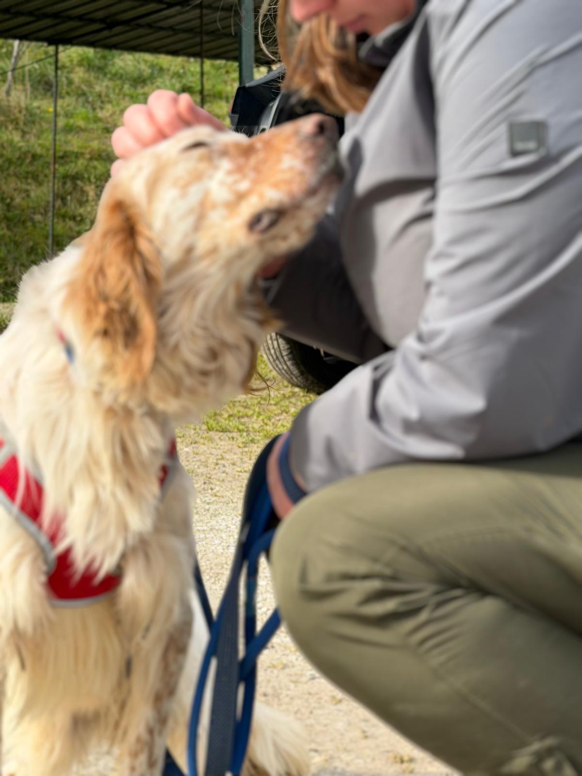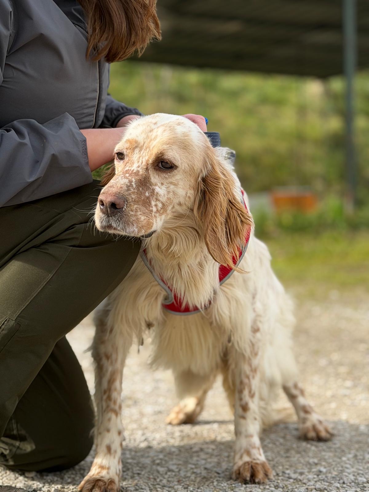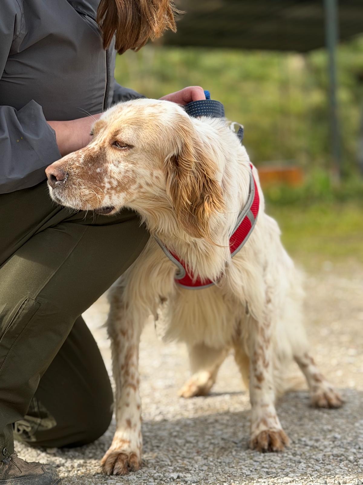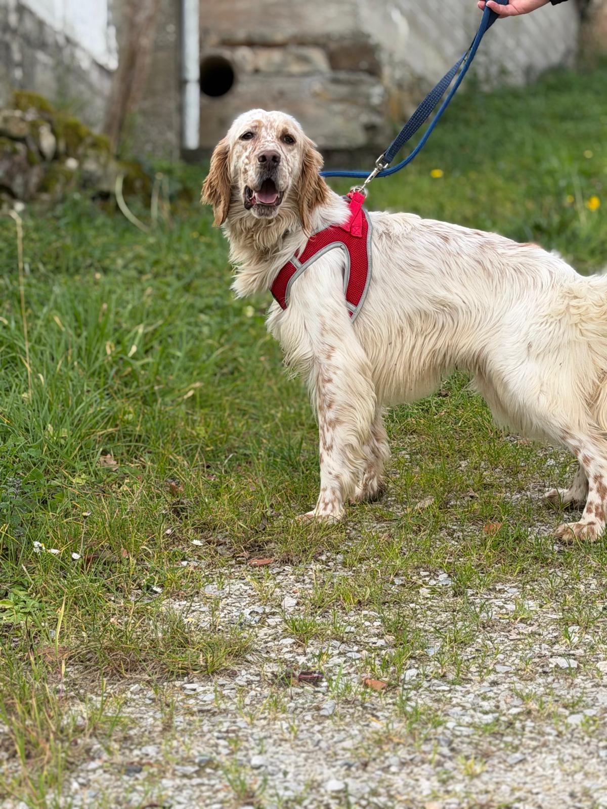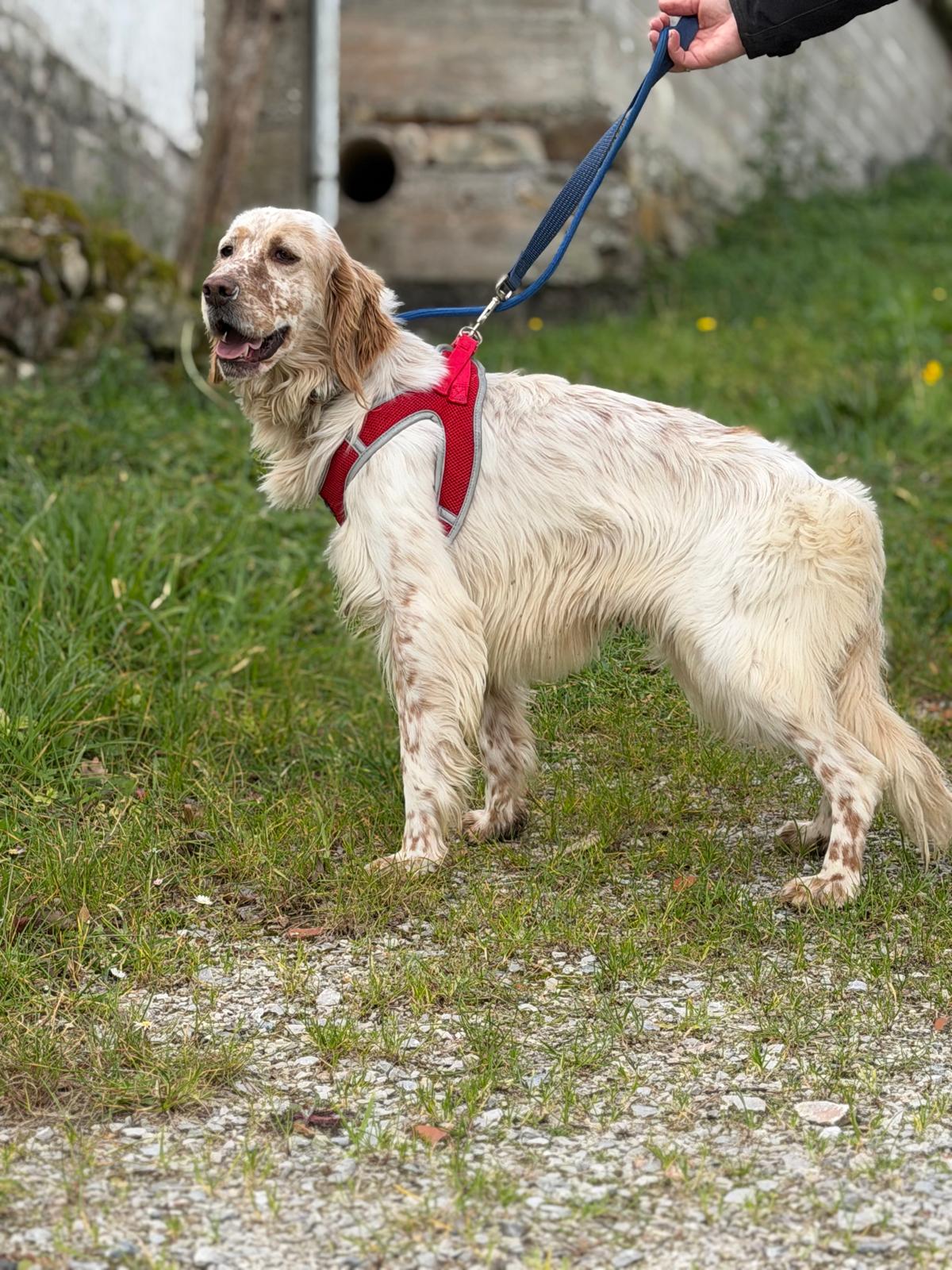He can be slightly nervous to start with but he loves a treat which really helps to increase his confidence out and about. He also loves to be stroked for reassurance and will undoubtedly come out of his shell in no time in a loving home