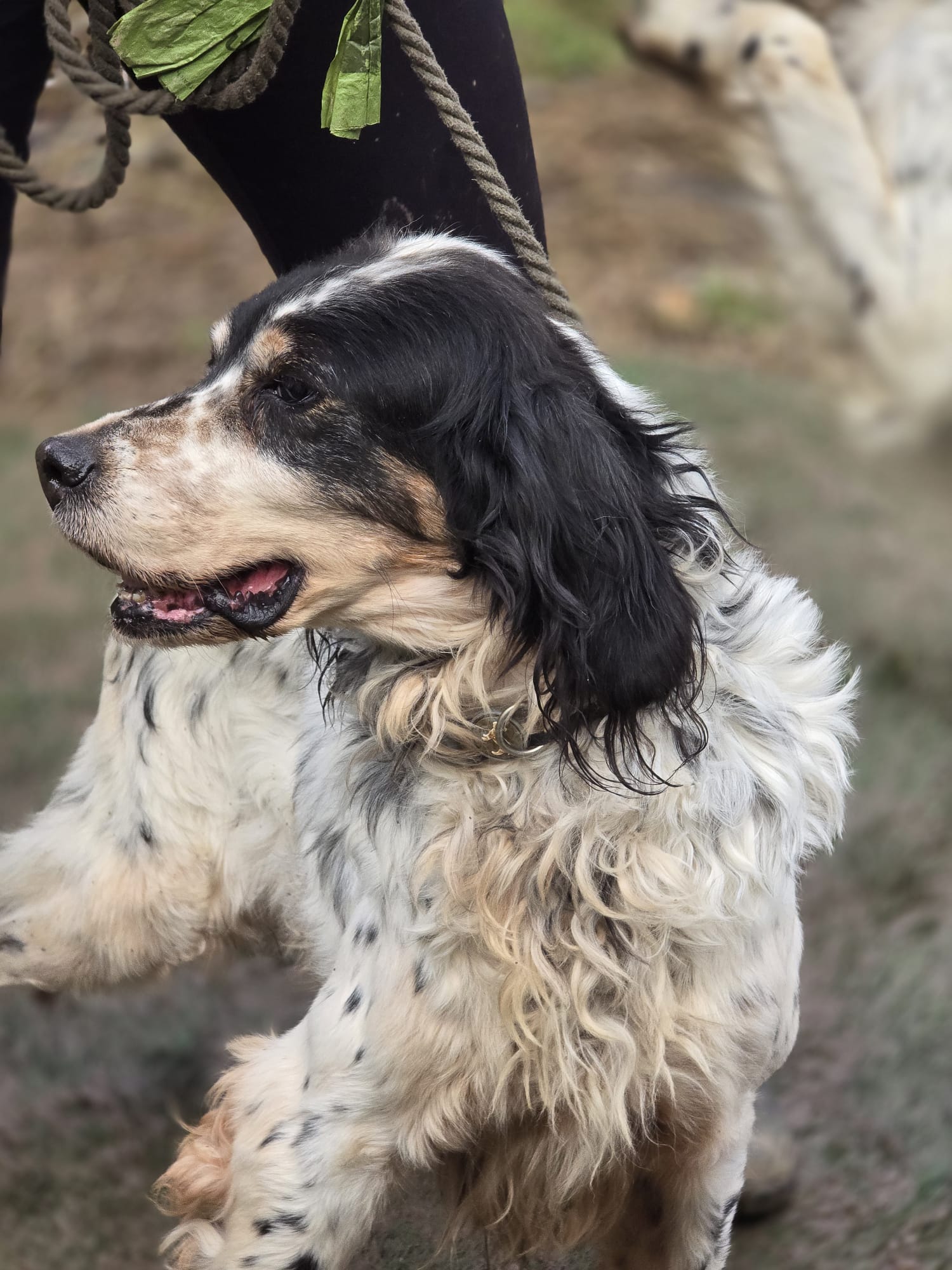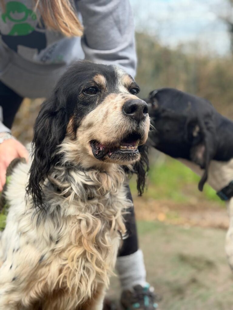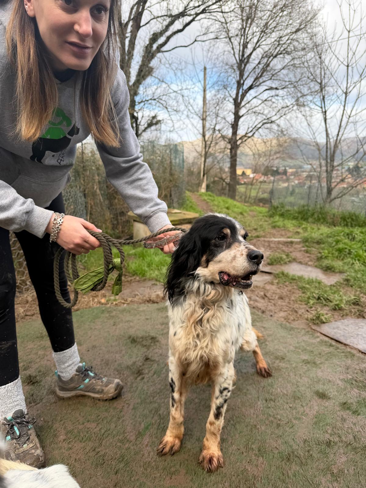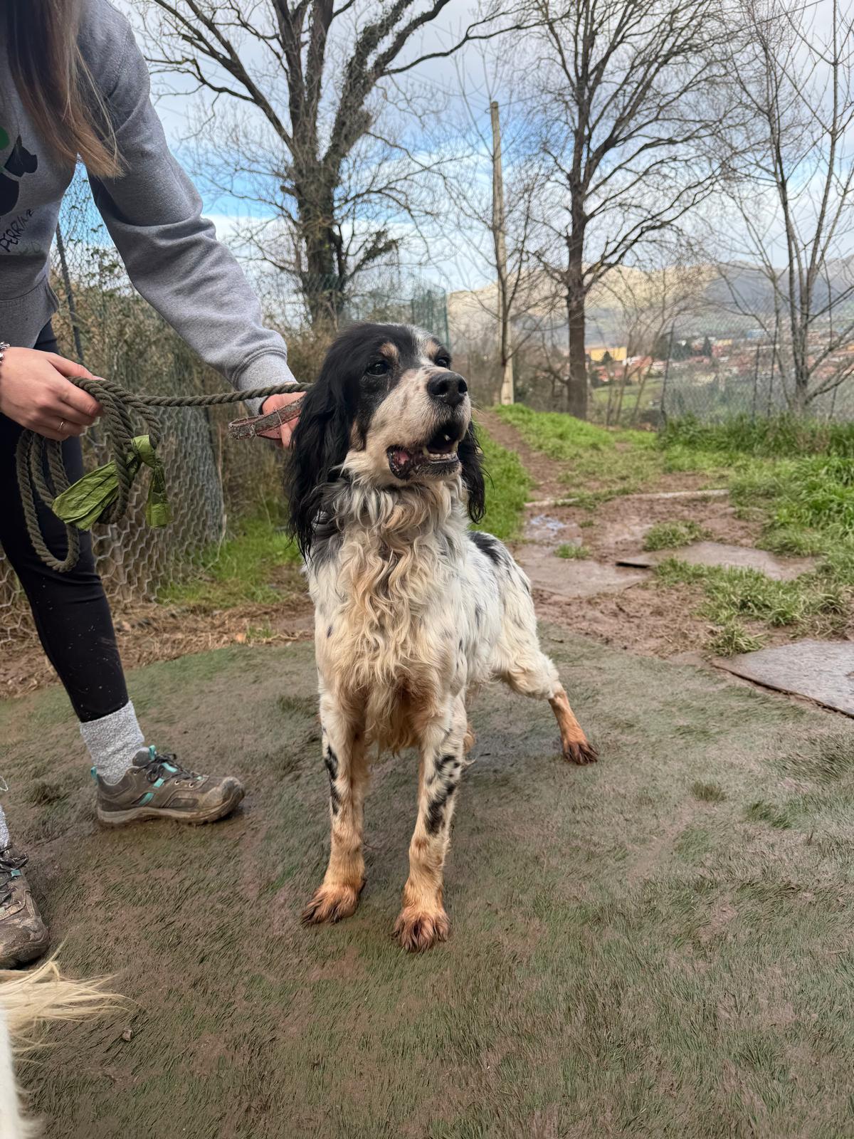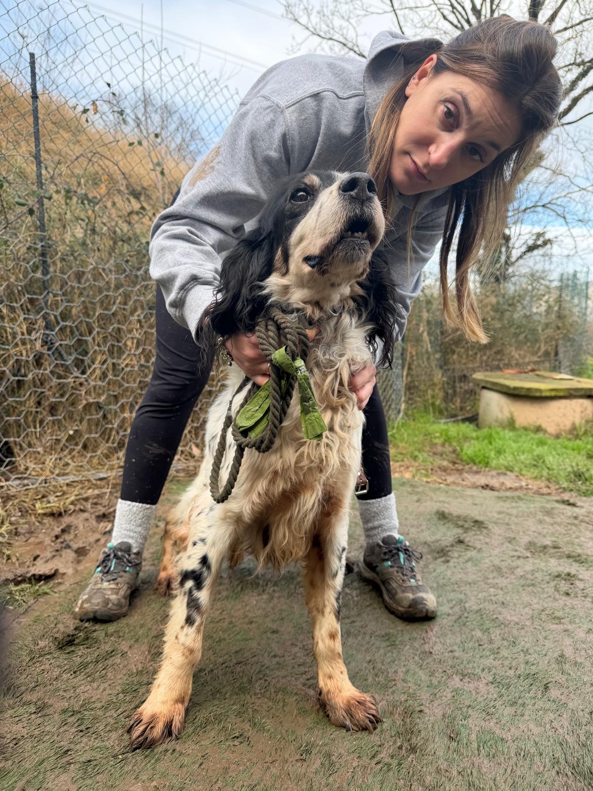 Rayo currently shares his kennel with three other setters and gets along beautifully with them and he’s often following the ladies at the shelter around looking for fuss.