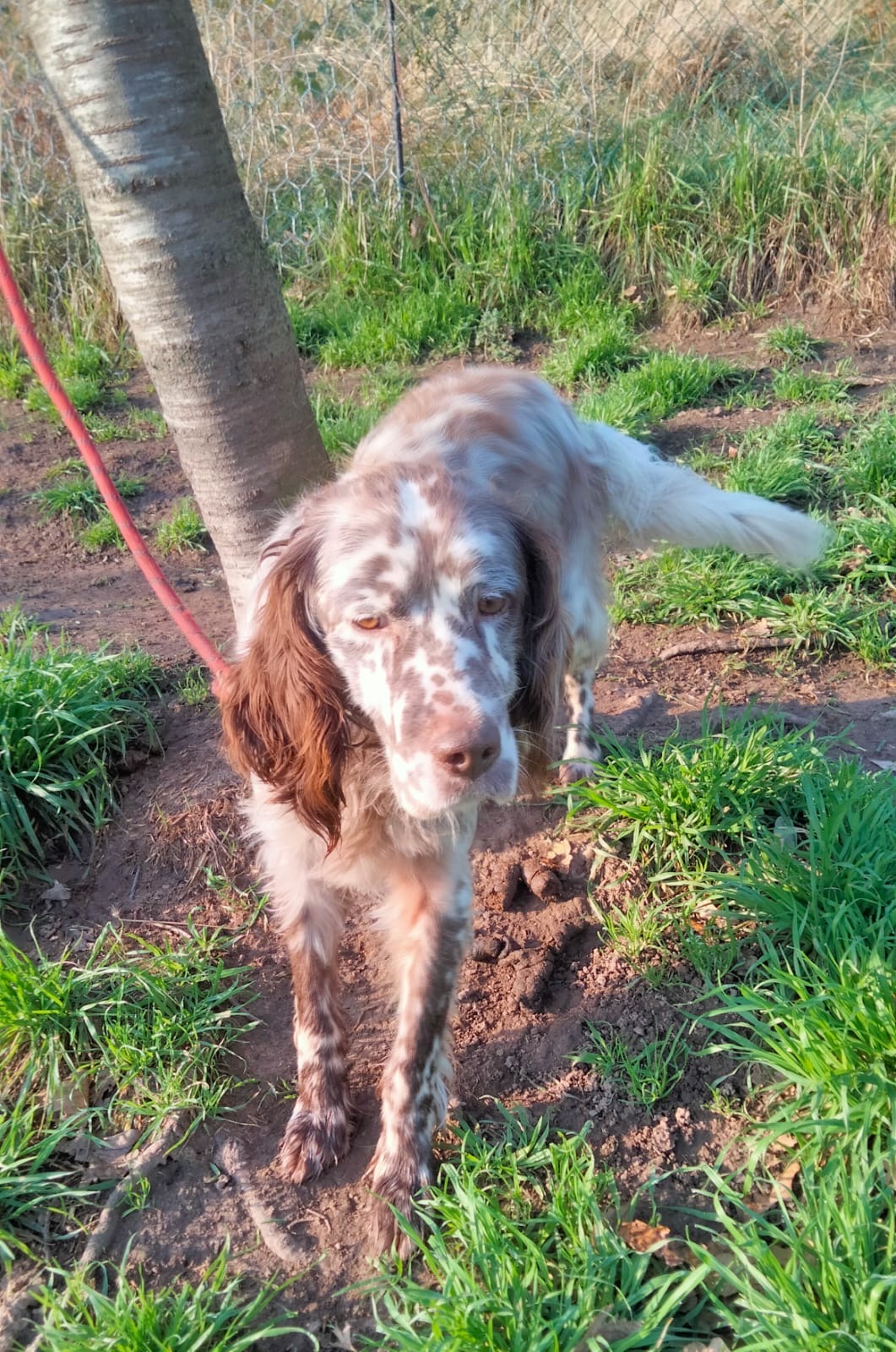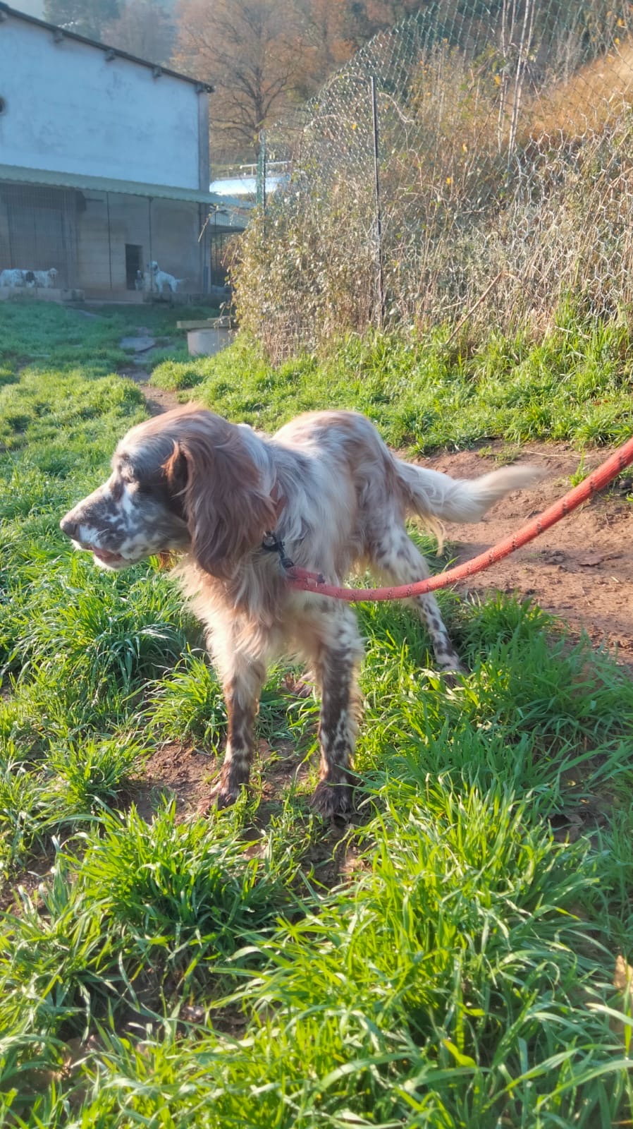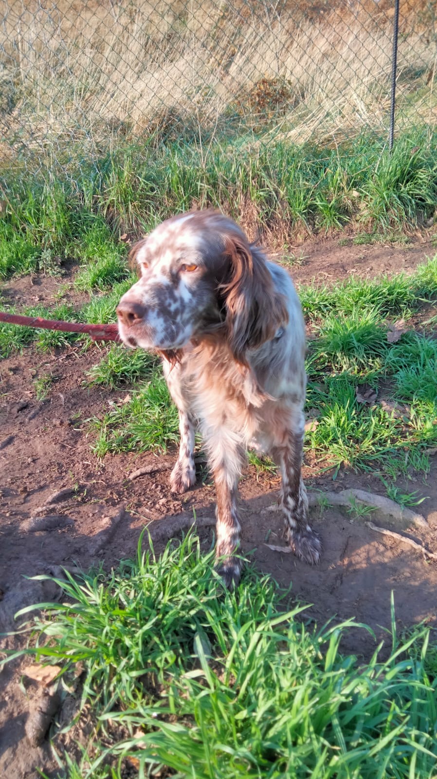 Yako is a handsome lad, another setter given up because he wasn’t wanted for hunting. He currently shares a kennel with Ken and the two get on really well and share their space and food nicely. He’s an active boy, as you would expect from any dog but he does also have his quiet moments where he likes sleeping in his kennel.