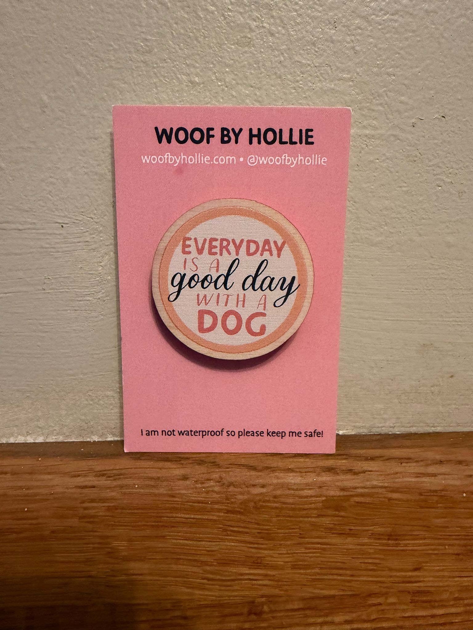 Celebrate the simple joy dogs bring to our lives with this charming pin badge featuring the message “Every Day Is a Good Day With a Dog.” Perfect for dog lovers, it’s a lovely way to add personality to jackets, bags, hats, or lanyards.